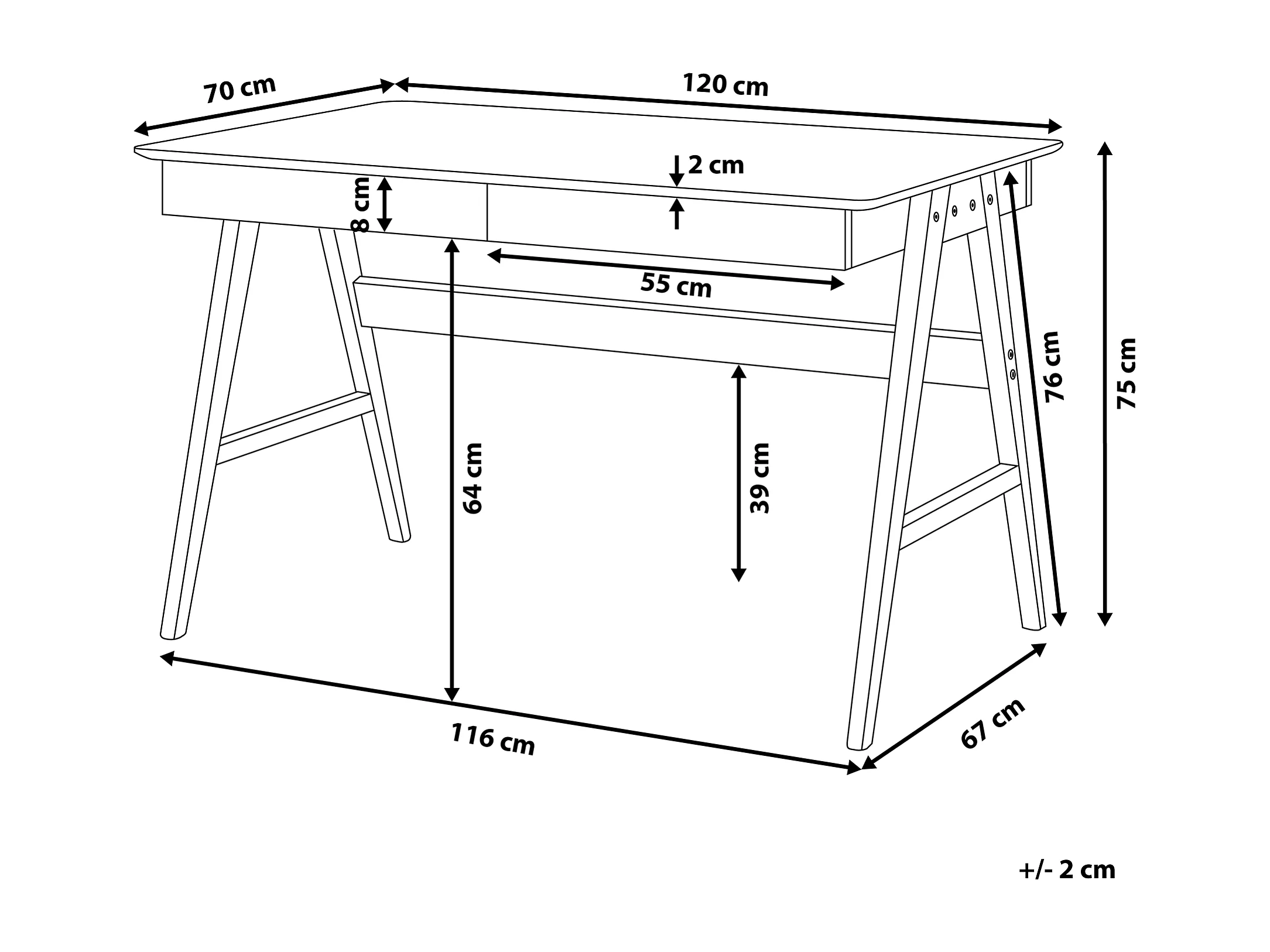Scrivania da ufficio in legno bianco con 2 cassetti 120 x 70 cm SHESLAY