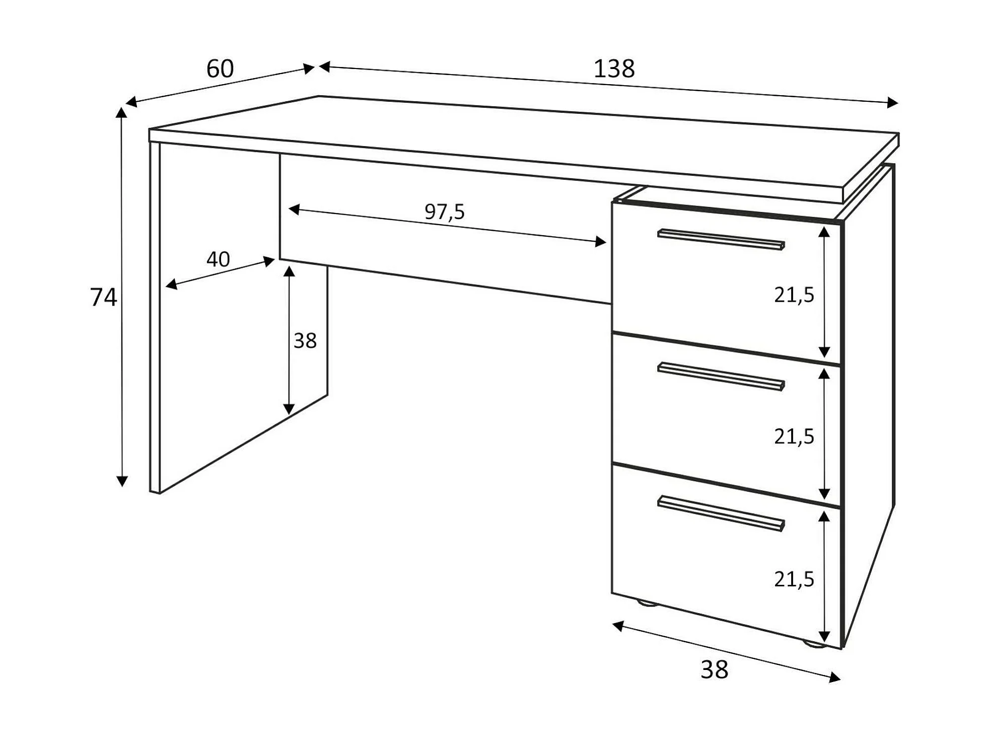 Scrivania Alimet, 2 Cassetti, 60x138x74h cm Bianco
