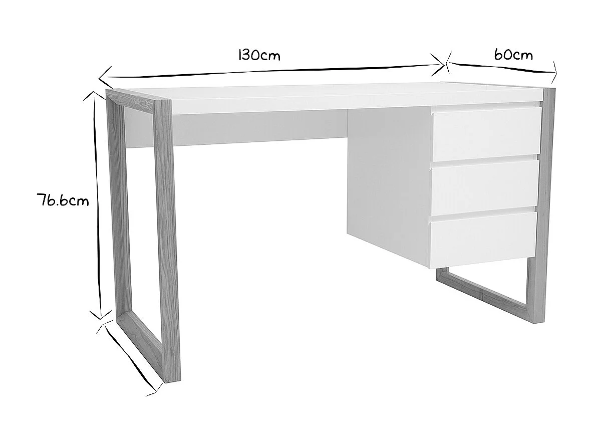 Scrivania design 3 cassetti bianco ARMEL