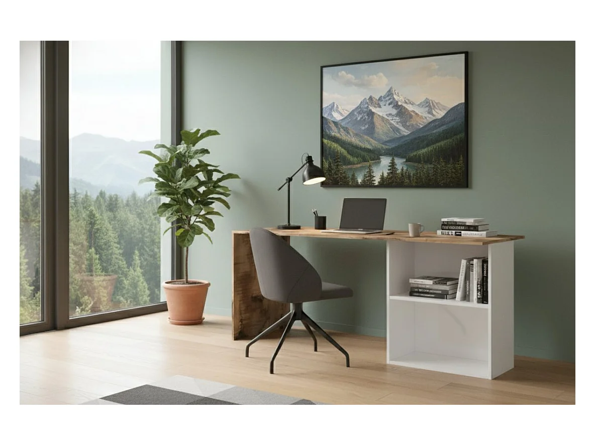 Dmora - Scrivania Ernestina, 140x60h75 cm, Bianco e Rovere