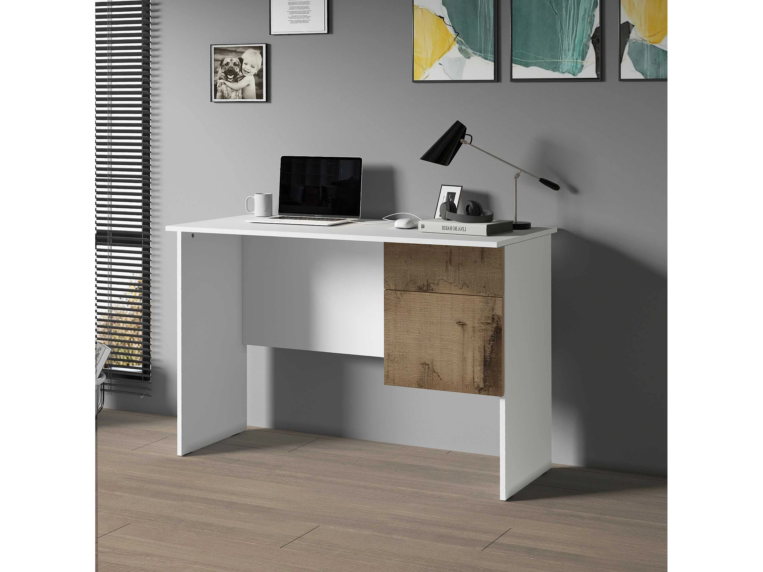 Scrivania Easy 1 anta e 1 cassetto bianco opaco e acero 110x50x75 cm
