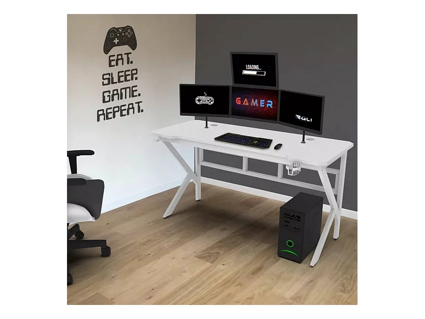 Scrivania ergonomica gamer 160x60 supporto cuffie e bevande Umberta