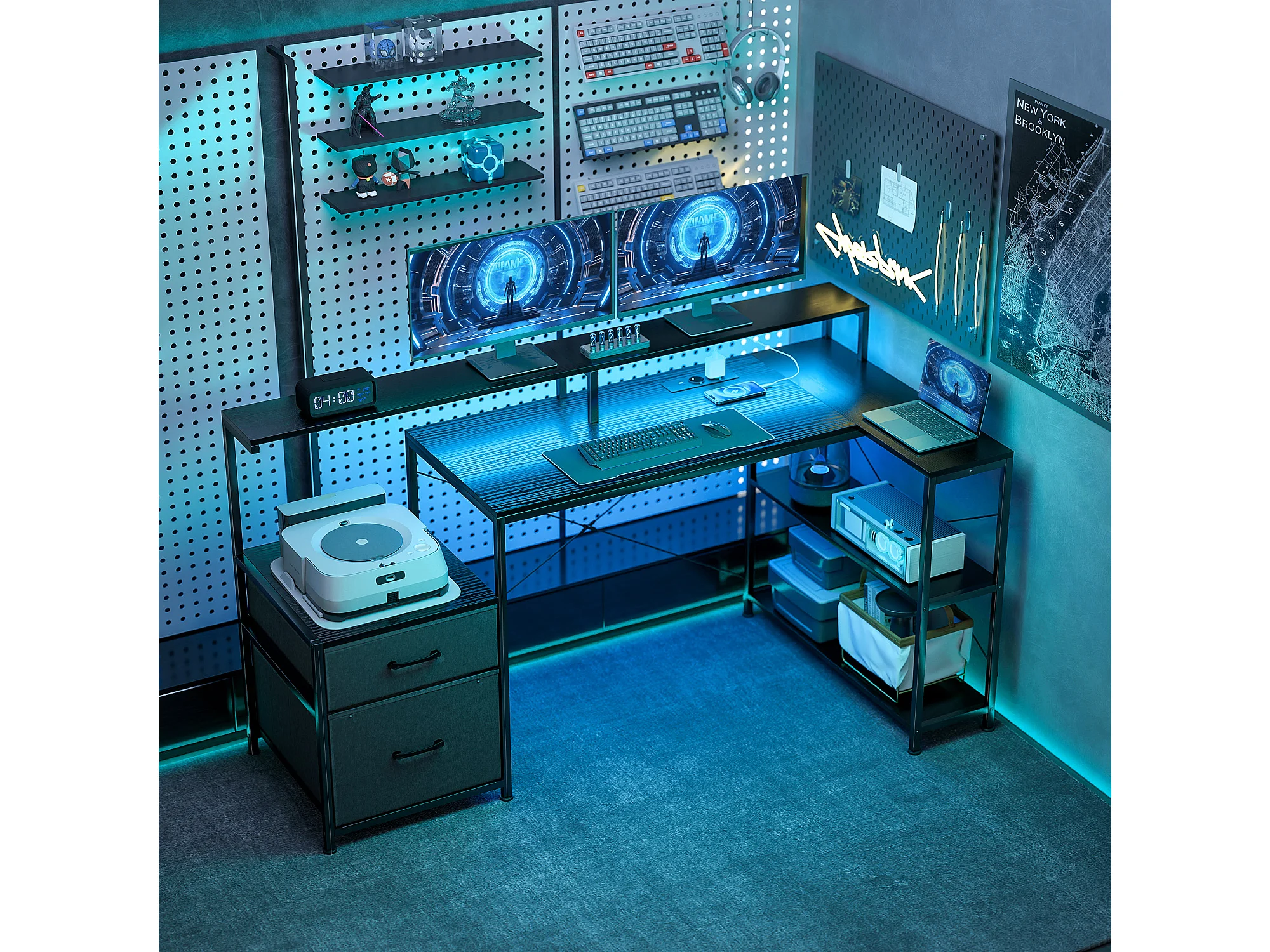 Scrivania angolare da gaming gancio per cuffie e porta tazza
