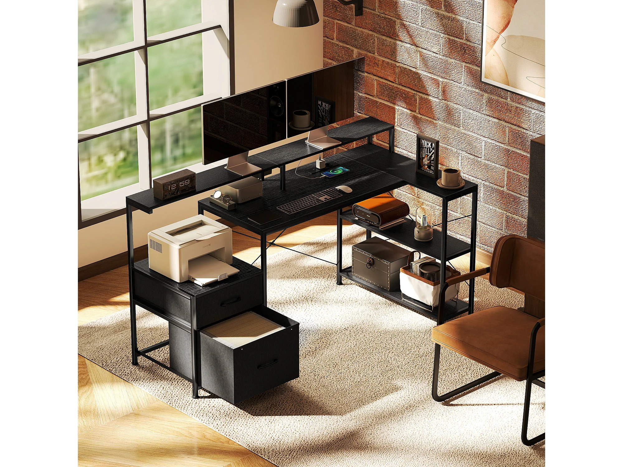 Scrivania angolare e salvaspazio per computer in legno nero