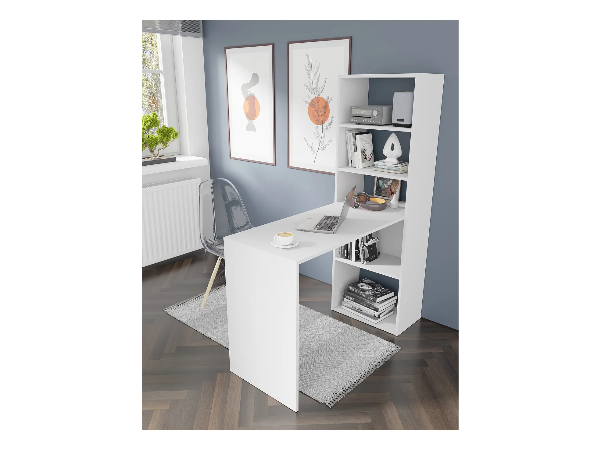 Scrivania HARMONY 120 cm - scrivania per computer - con scaffale - bianco opaco