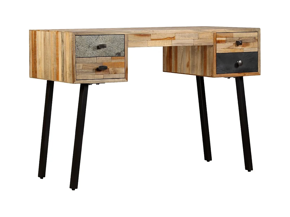 Scrivania a 2 Cassetti Legno Massello di Recupero 120x50x76 cm