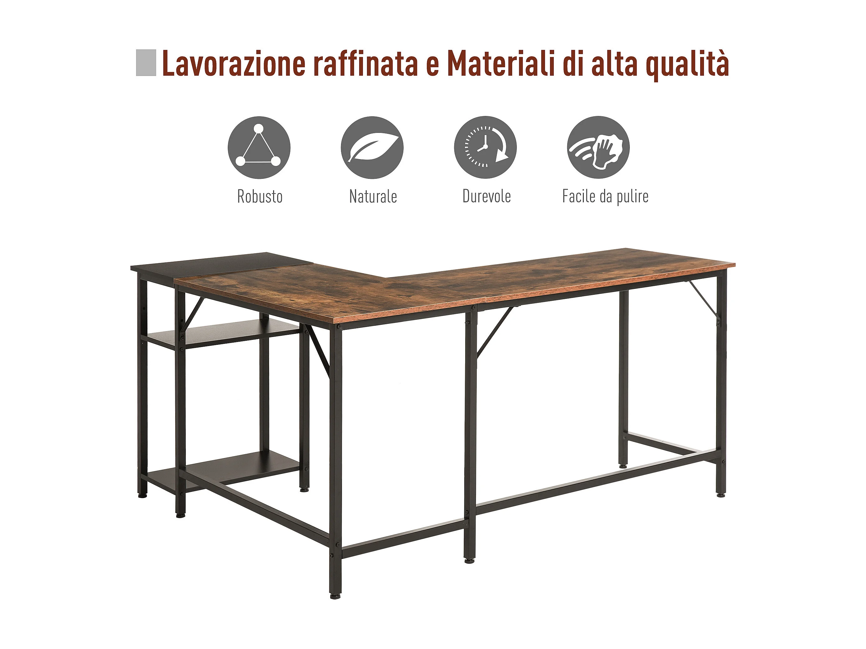 Scrivania stile industriale mensole e cassetto in metallo e mdf