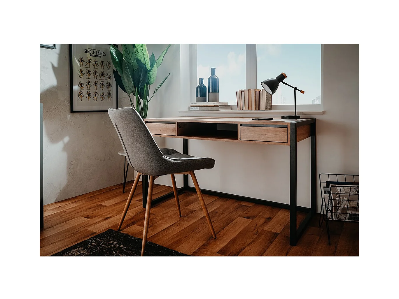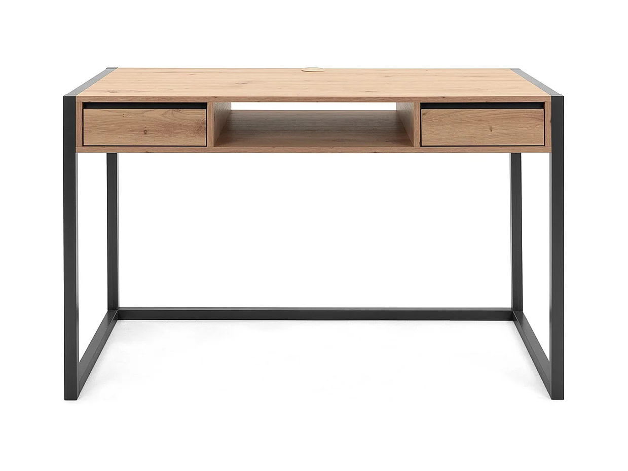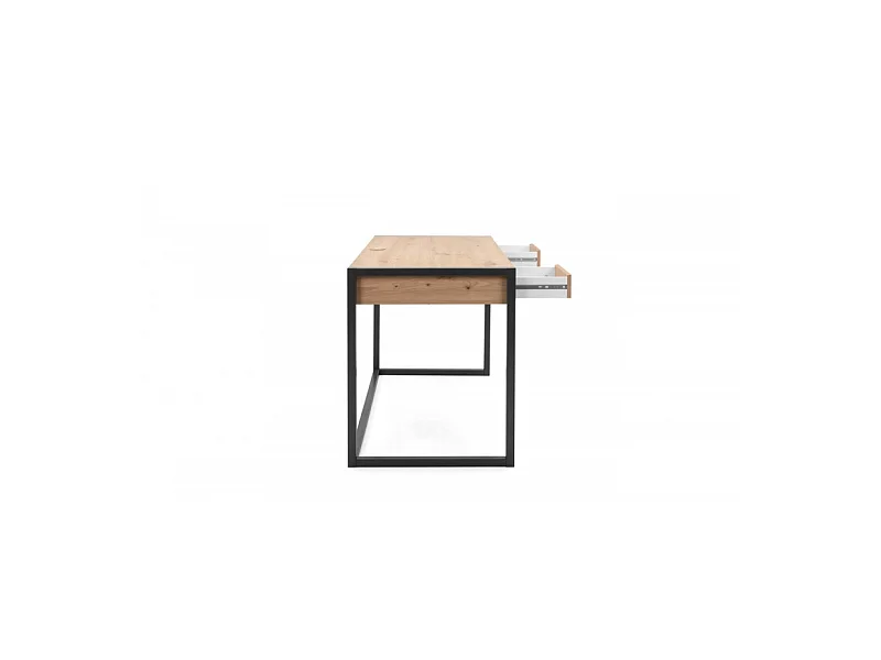 Scrivania a muro industriale a 2 cassetti L120 cm - Decorazione legno chiaro