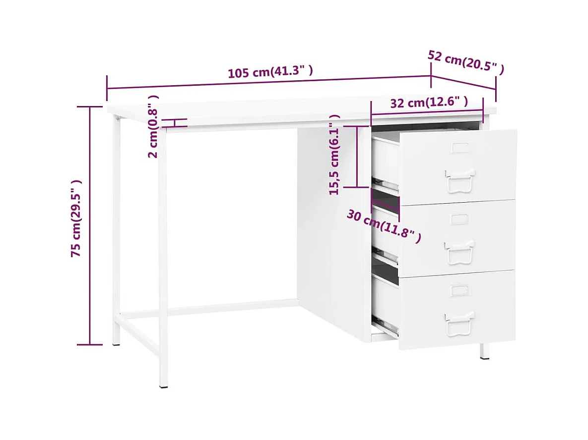 Scrivania Industriale con Cassetti Bianca 105x52x75 cm Acciaio