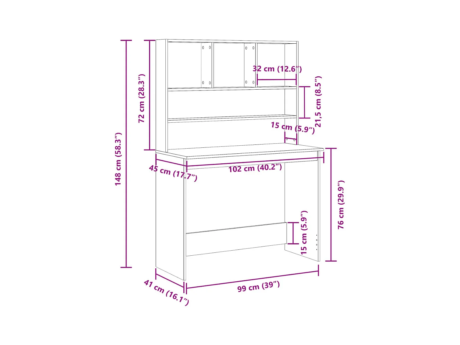 Scrivania Mensole Legno Antico 102x45x148 cm Legno Multistrato