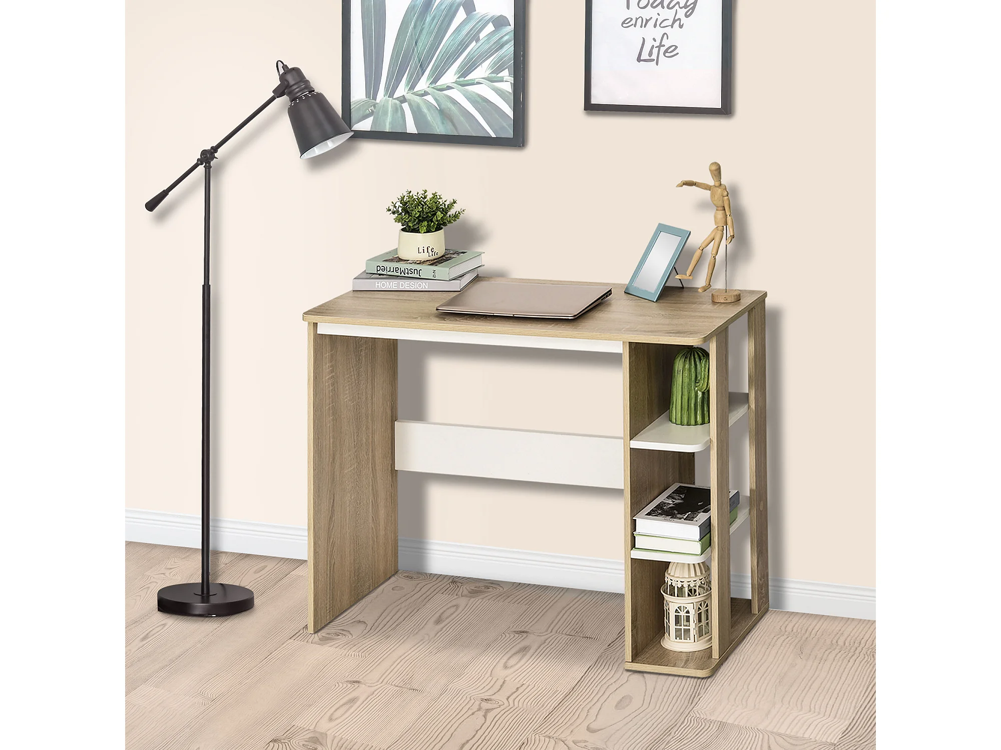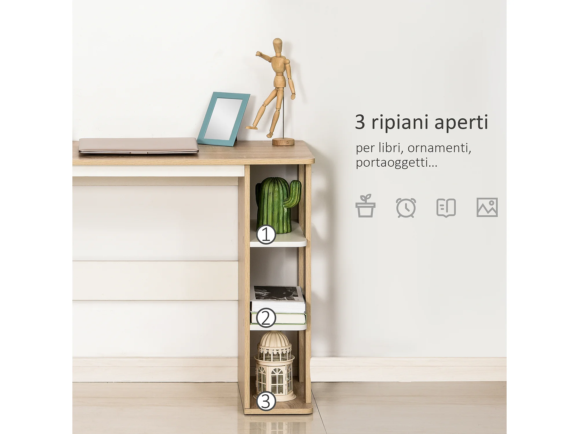 Scrivania moderna con 3 ripiani 100x44x74cm in legno bianco e quercia