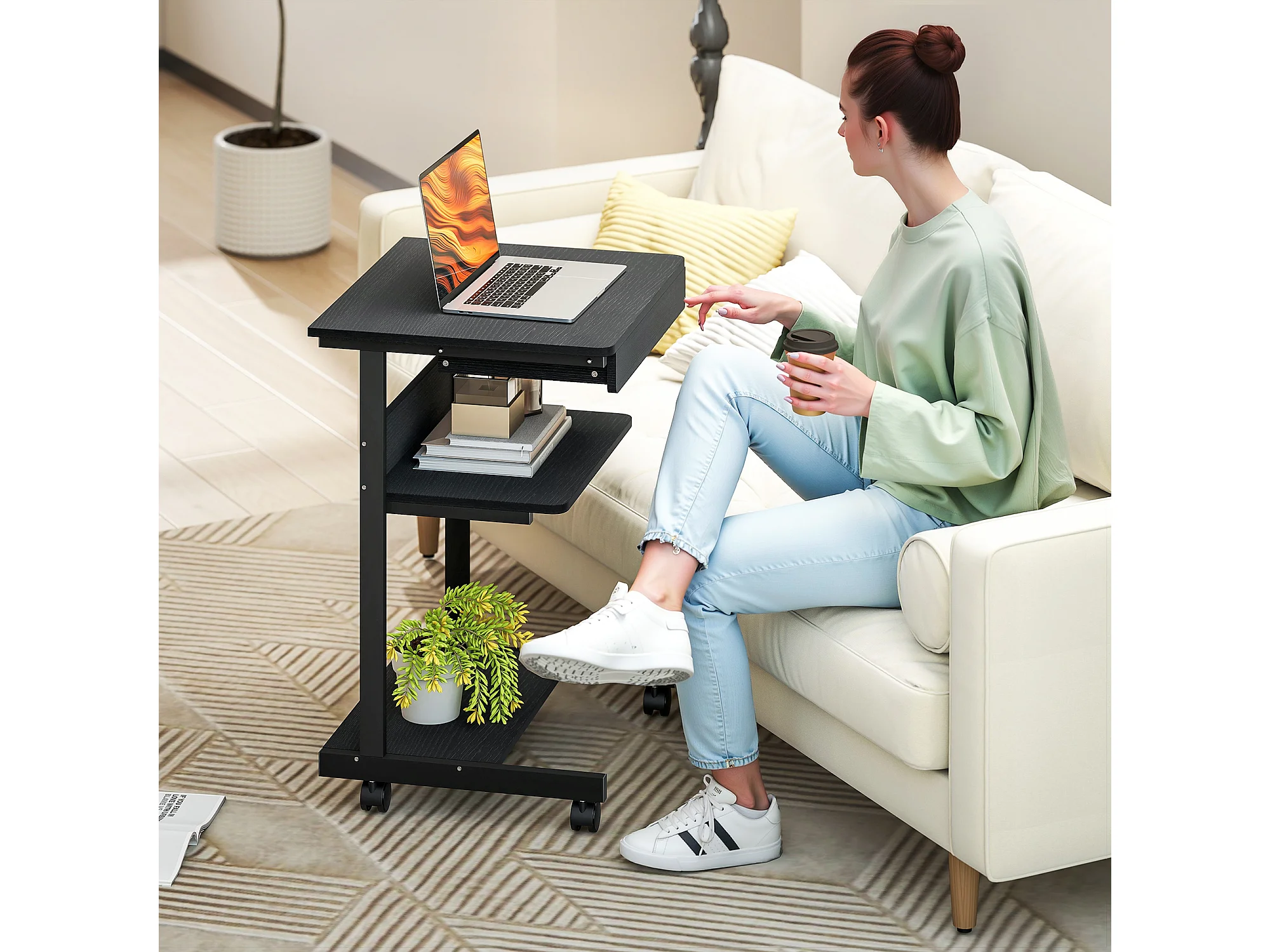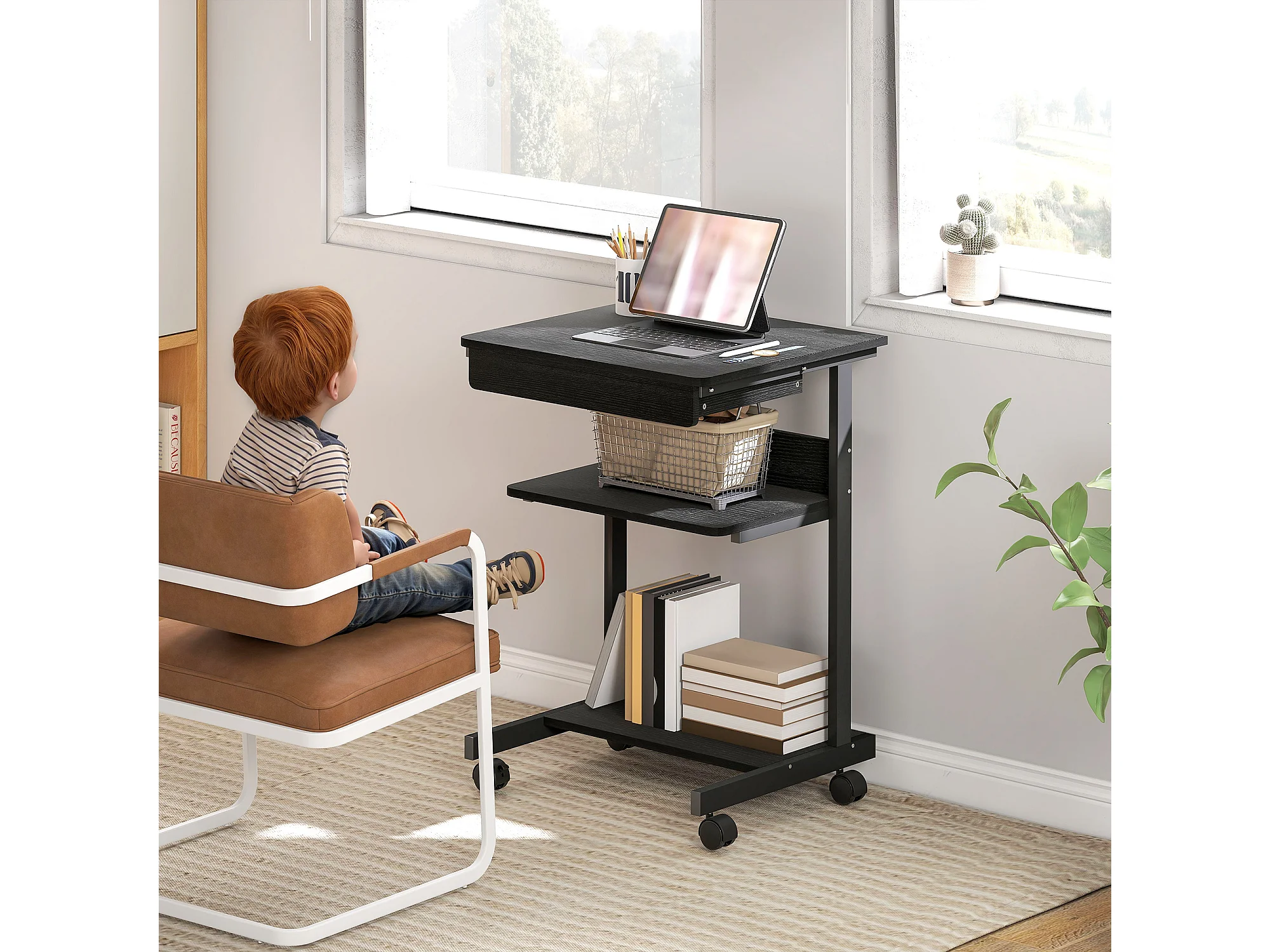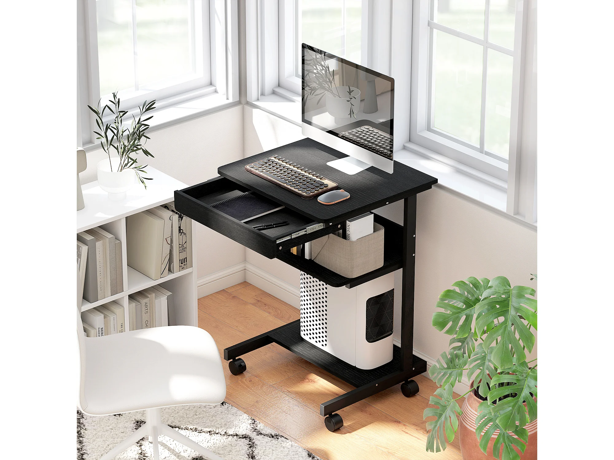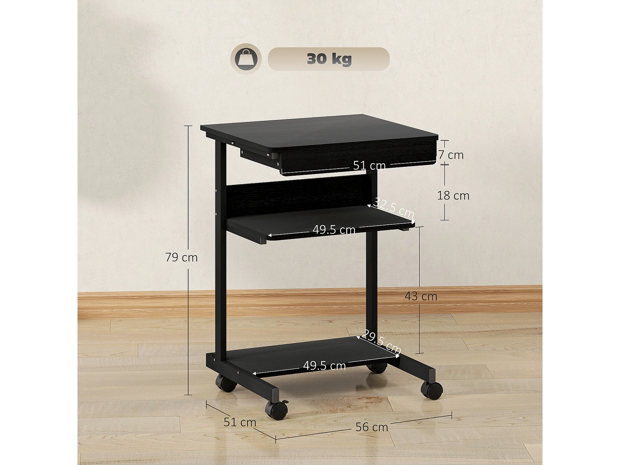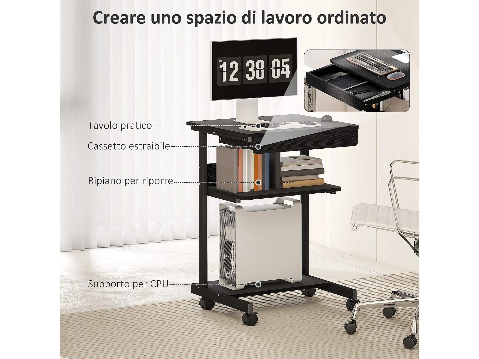 Scrivania pc con cassetto scorrevole e 2 ripiani aperti nero