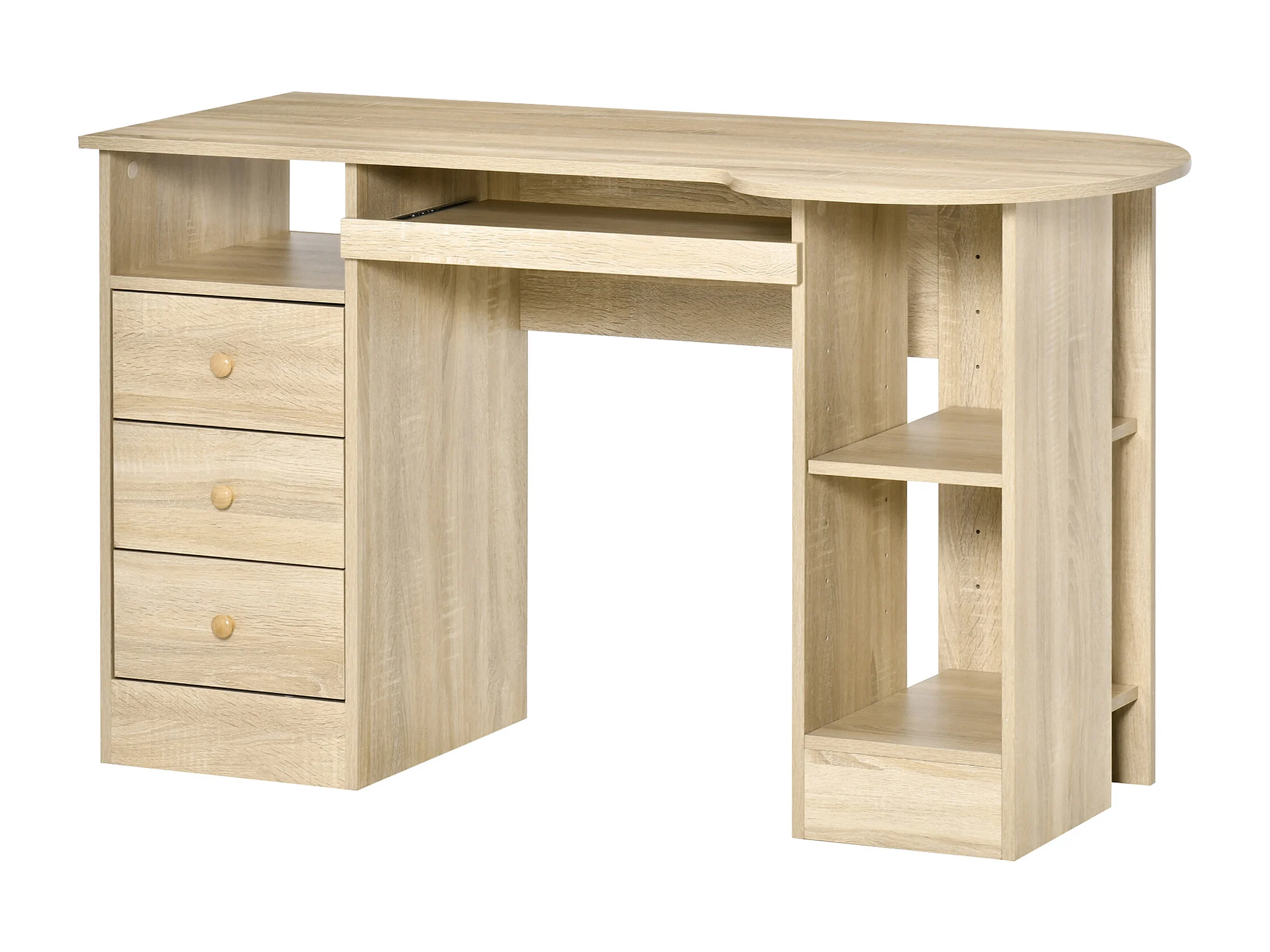 Scrivania pc con cassetto scorrevole e 2 ripiani aperti bianco rovere