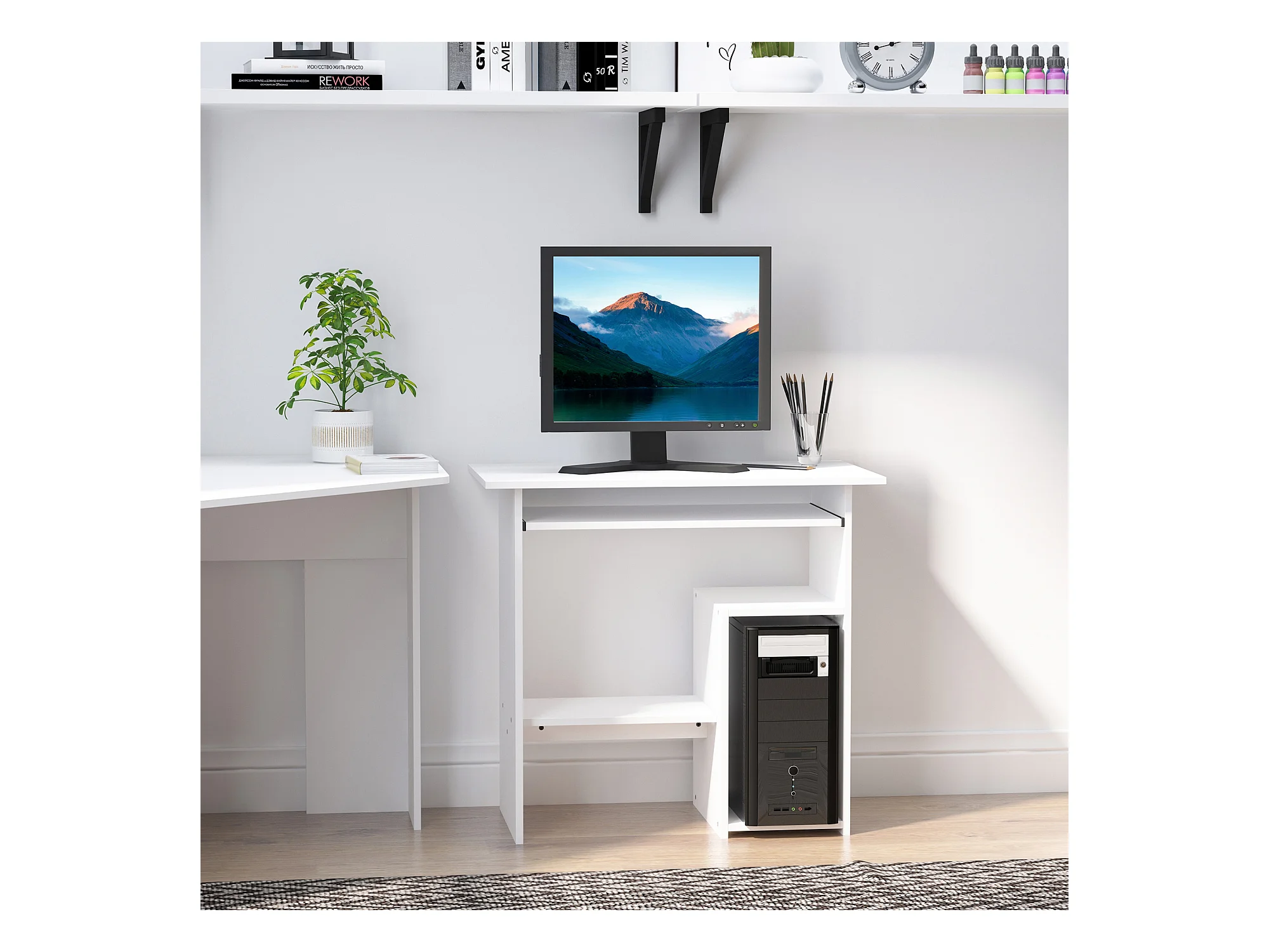 Scrivania compatta per computer fisso pc in legno bianco