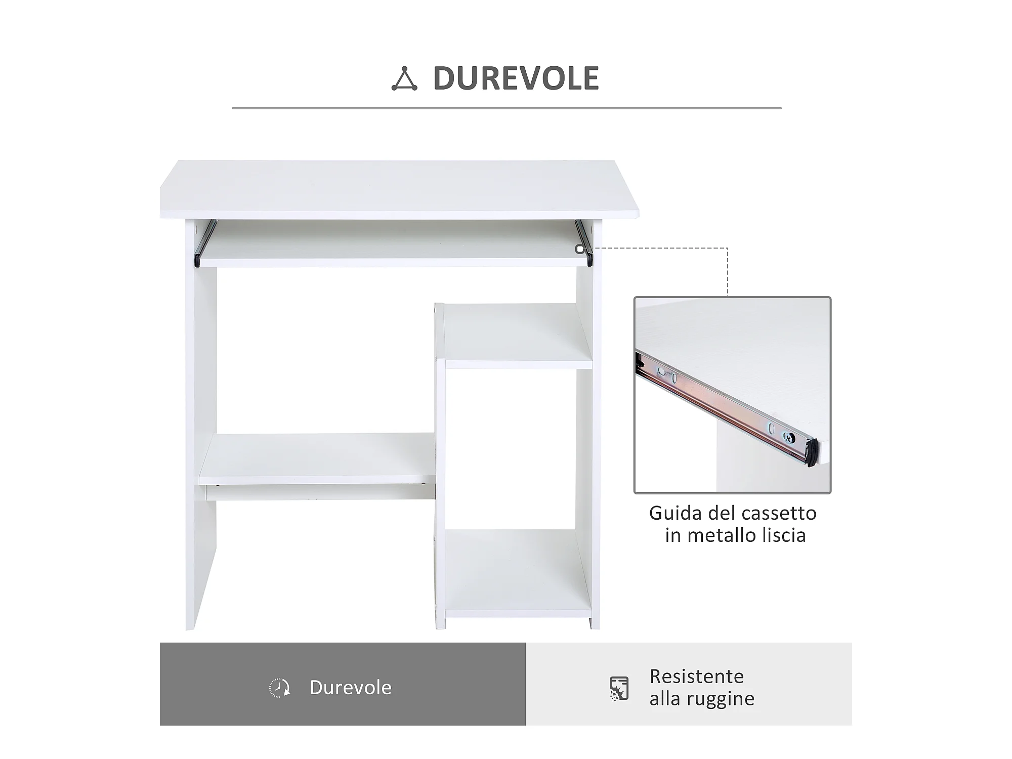 Scrivania pc in legno con mensola tastiera estraibile bianco