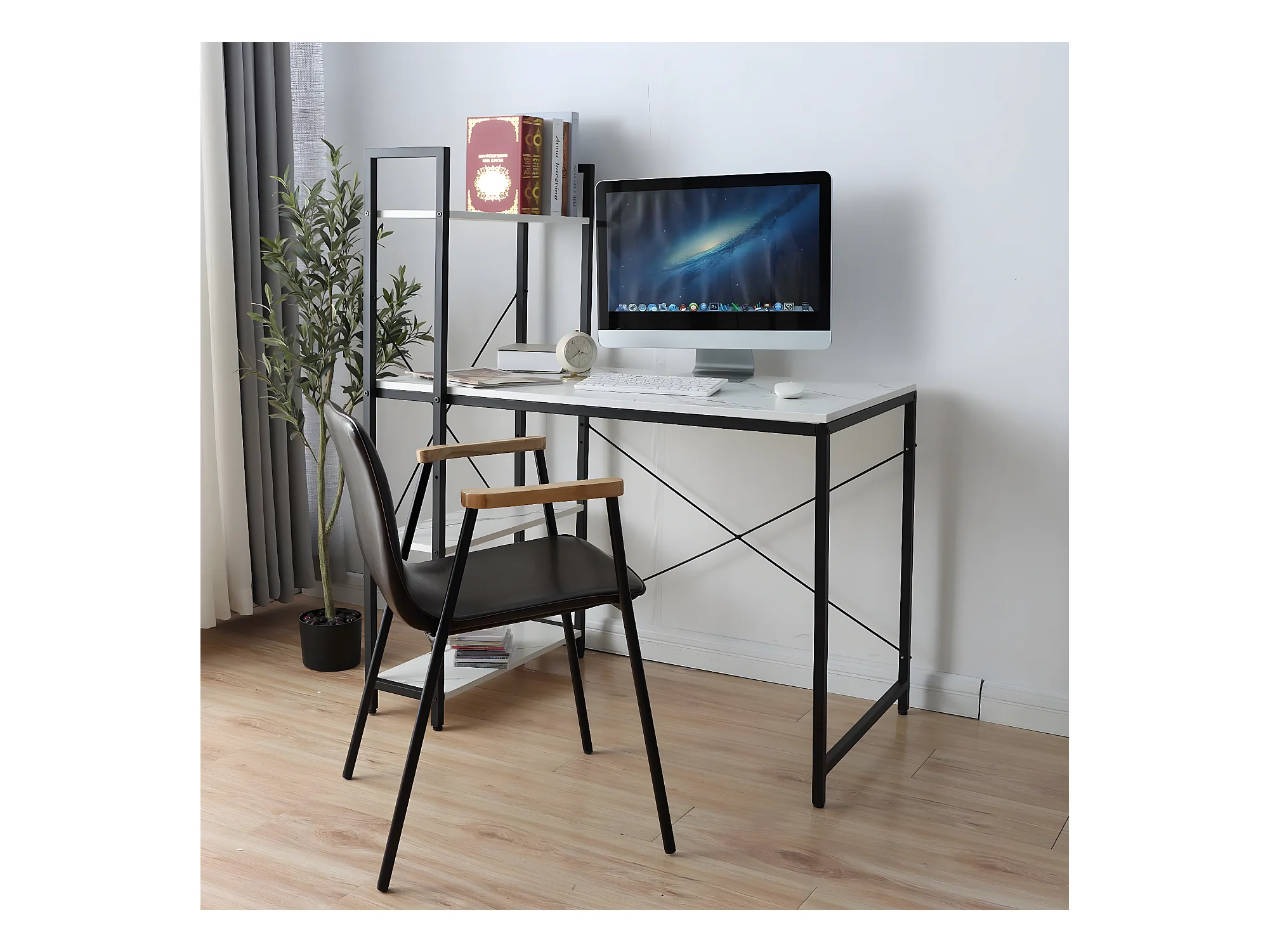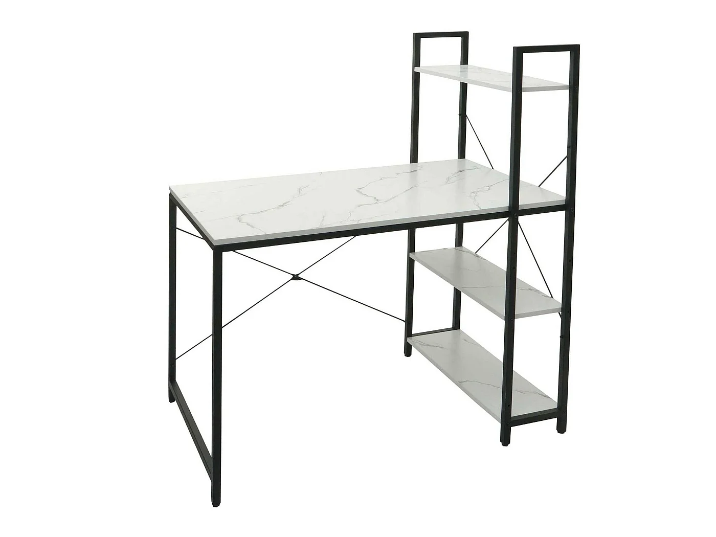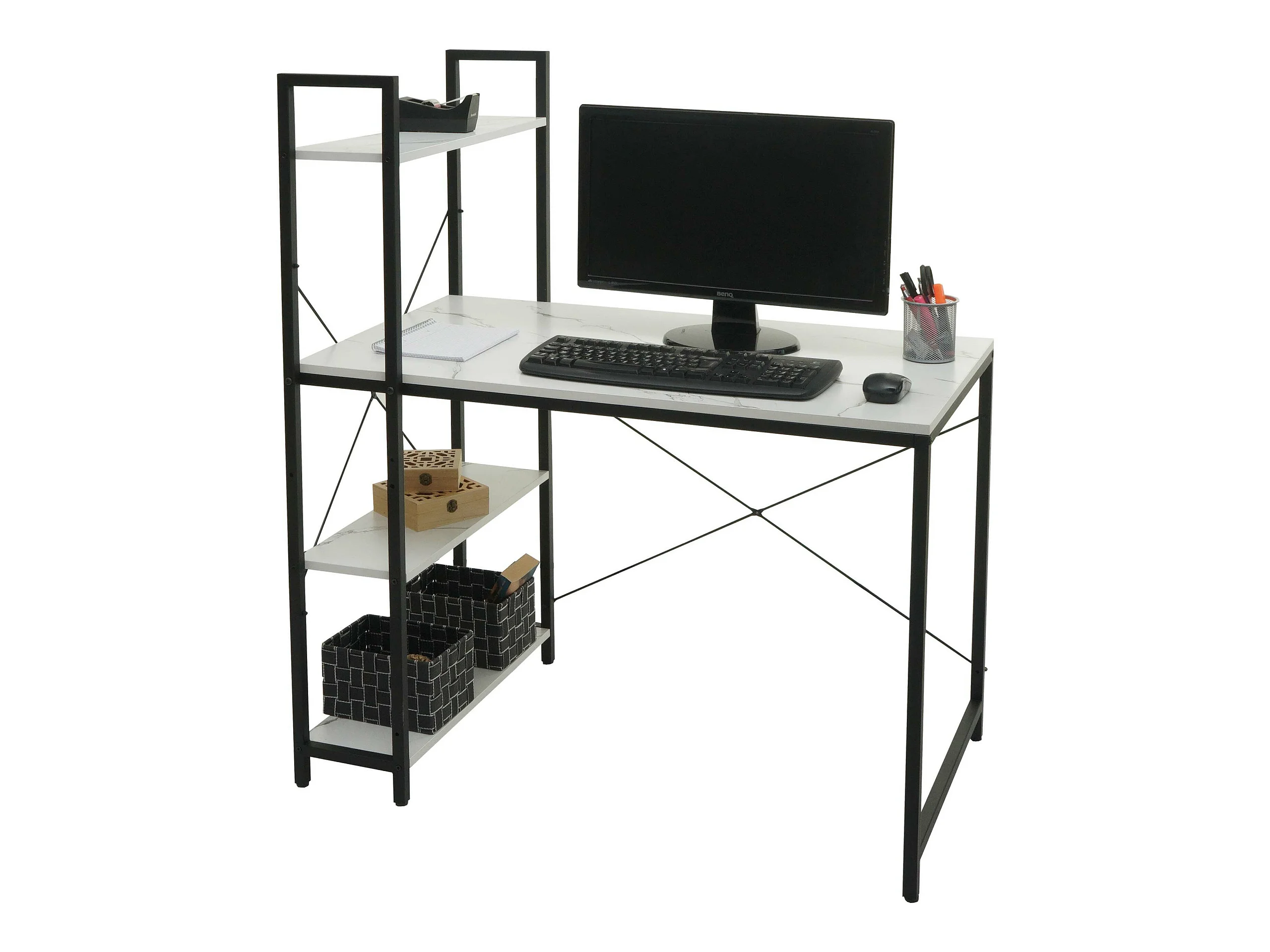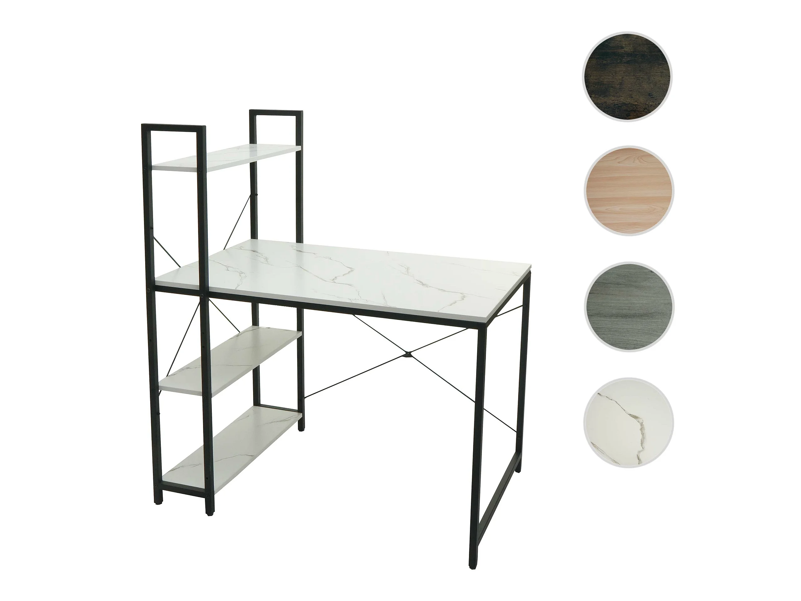 Scrivania pc laptop tavolino ripiani regolabili MCW-K81 120x100x60cm ferro MDF bianco effetto marmo