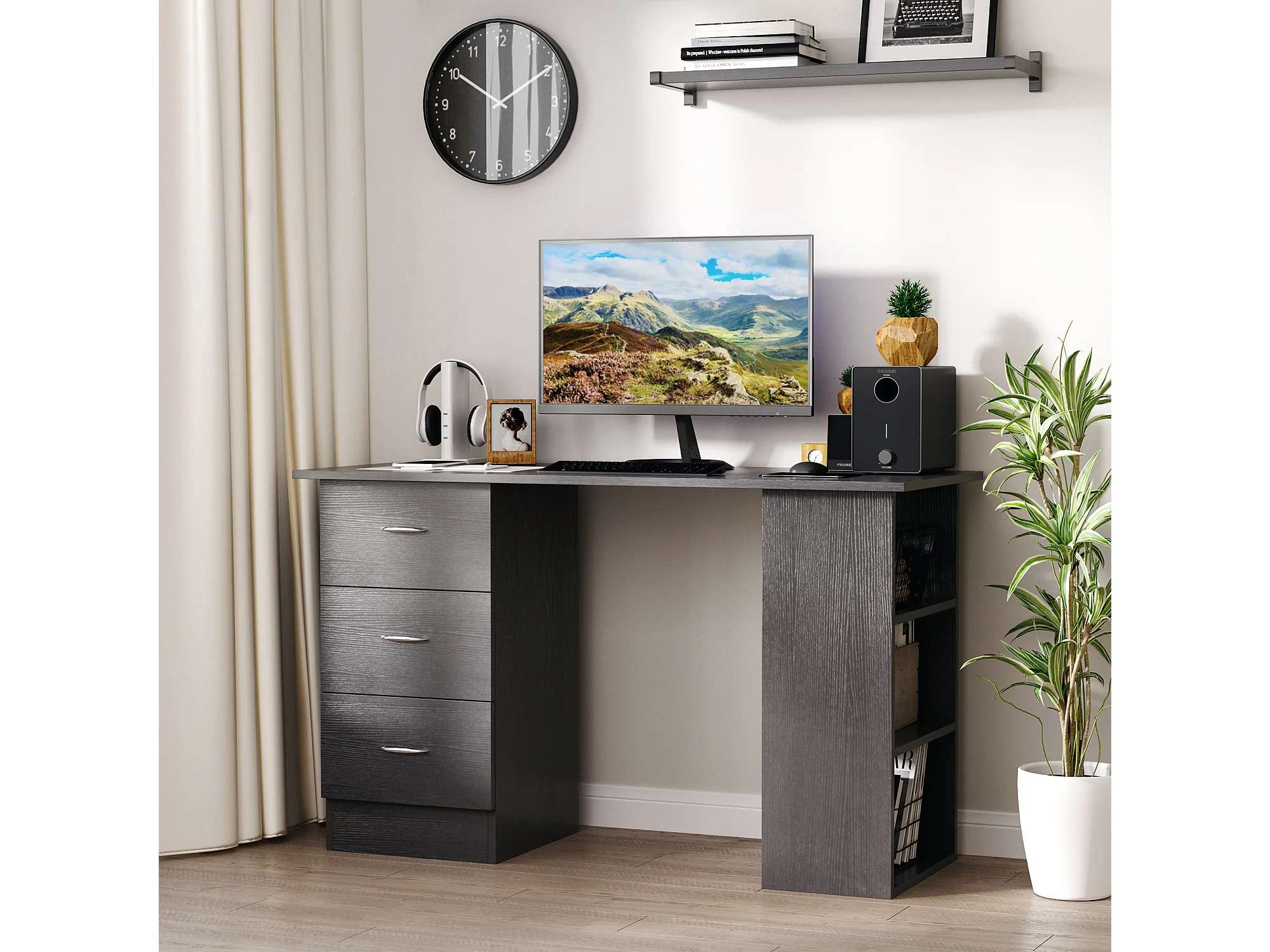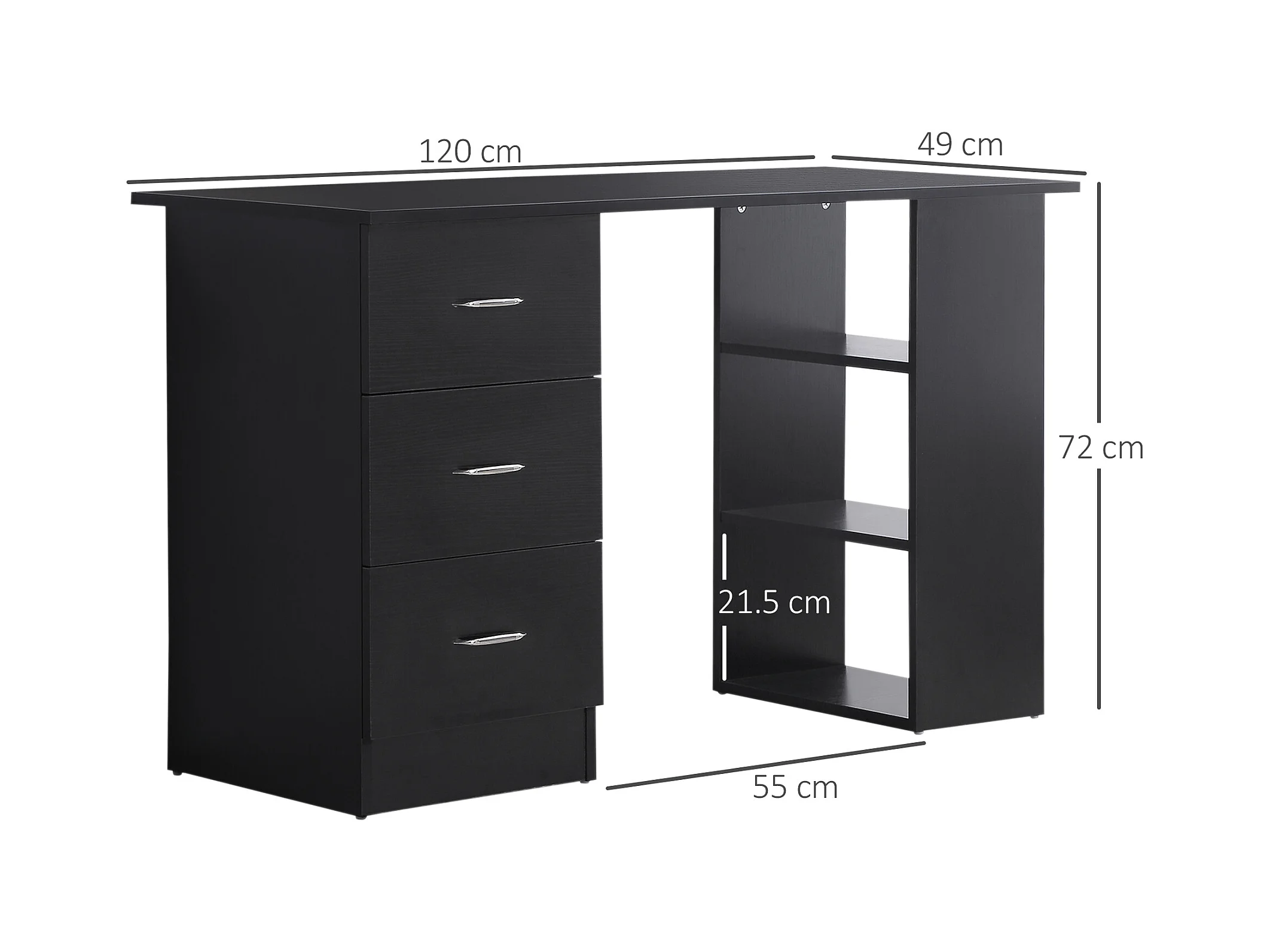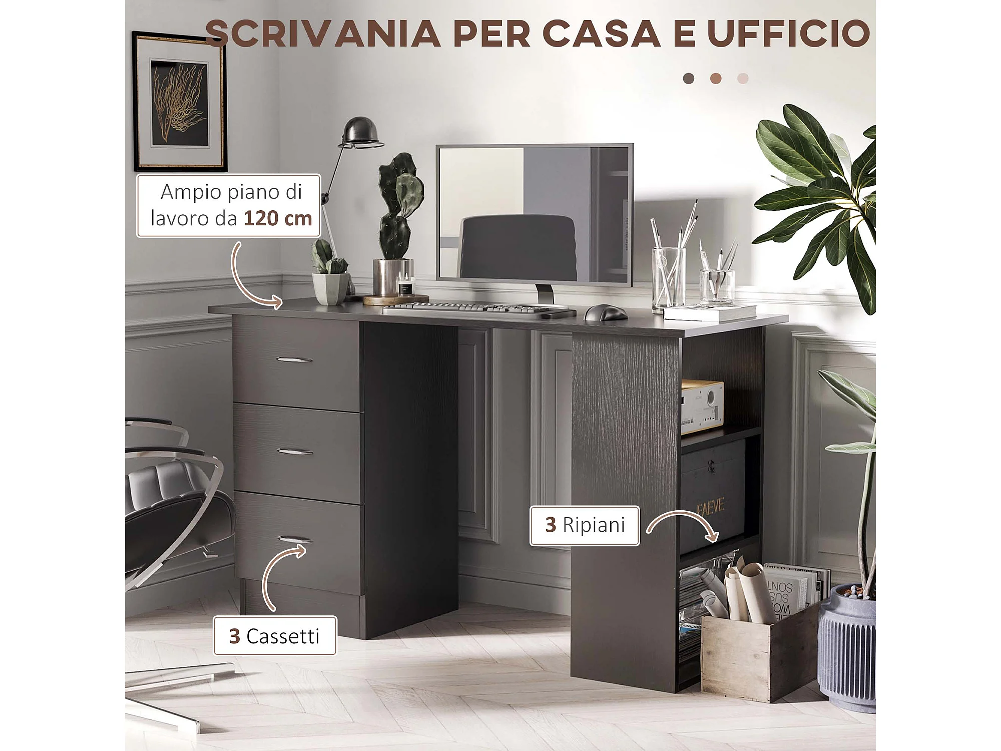 Scrivania pc moderno con 3 ripiani e 3 cassetti per camera in mdf nero