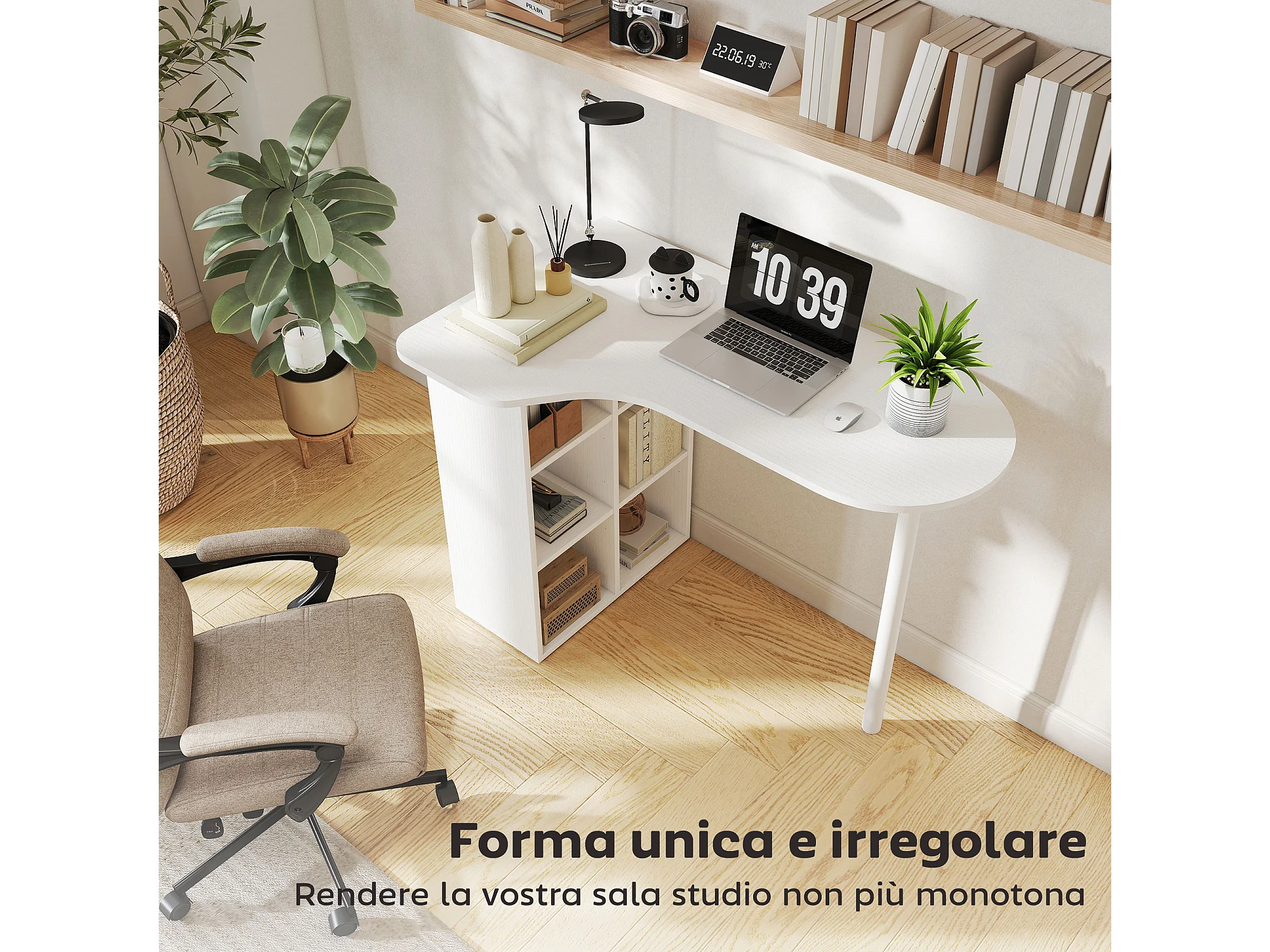 Scrivania per camera con 6 ripiani e 4 scaffali regolabili bianca