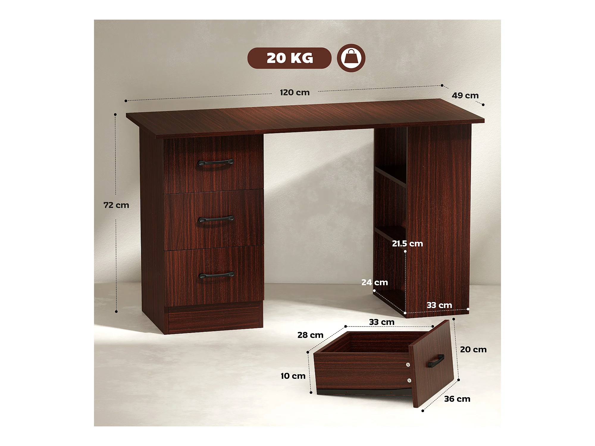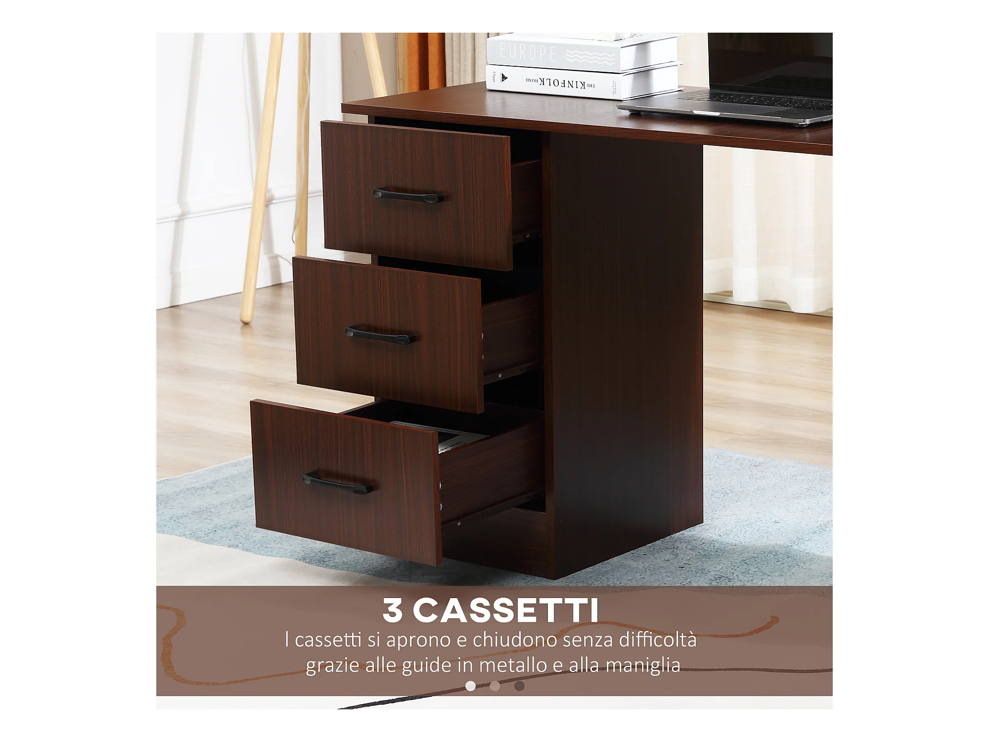 Scrivania per camera e ufficio 3 cassetti 3 ripiani reversibili