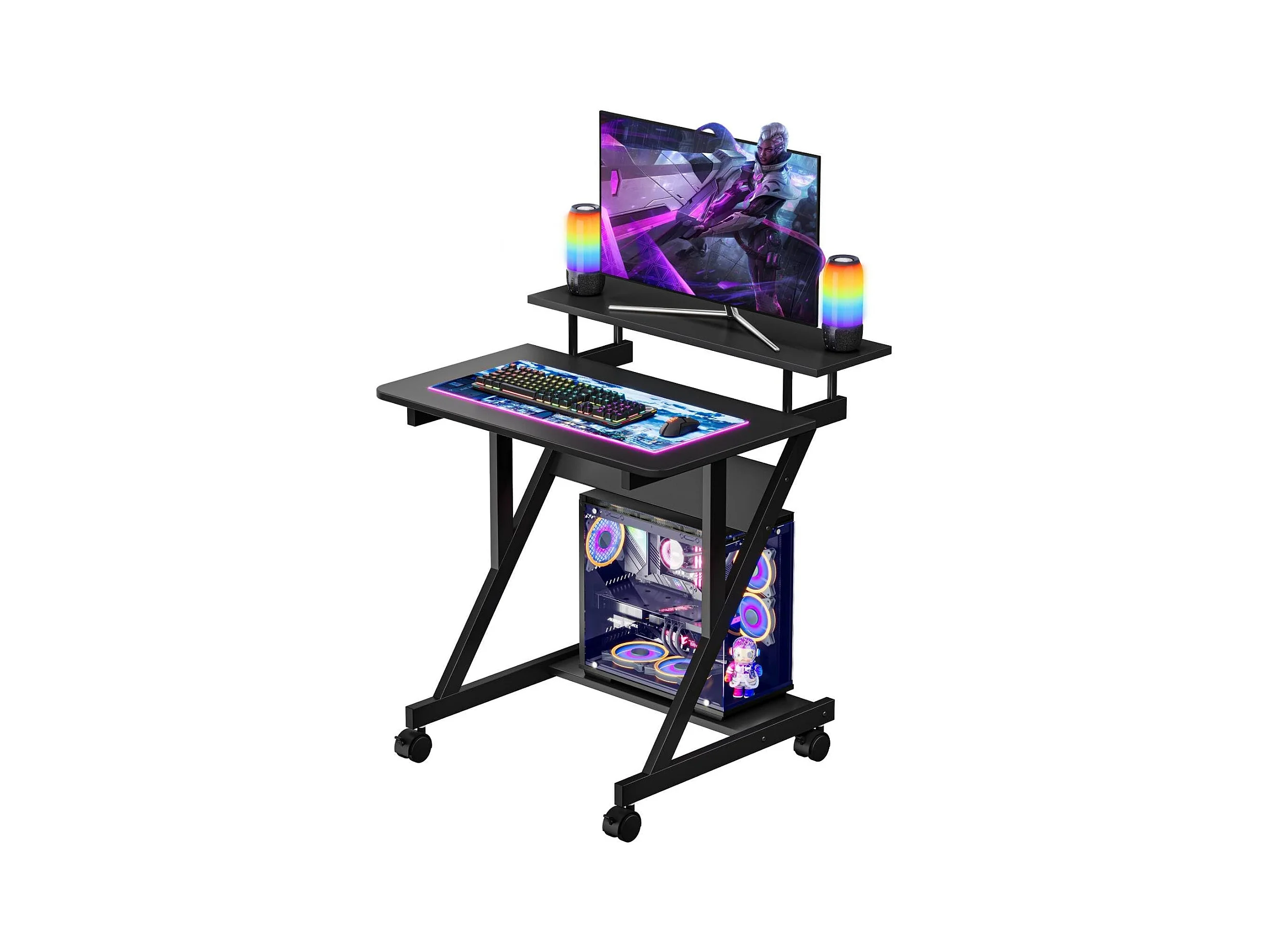 Scrivania per computer a Z con ruote, compatta 70x60x79 cm, ripiani integrati, facile da spostare, ideale per piccoli spazi, ufficio o studio