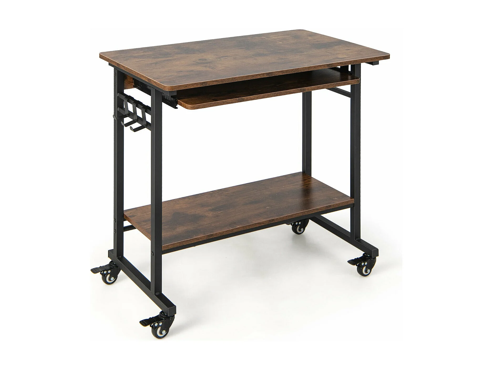 Scrivania per computer su ruote Scrivania per computer mobile con ripiano estraibile per tastiera per casa ufficio Camera dei bambini Marrone 20_0002071