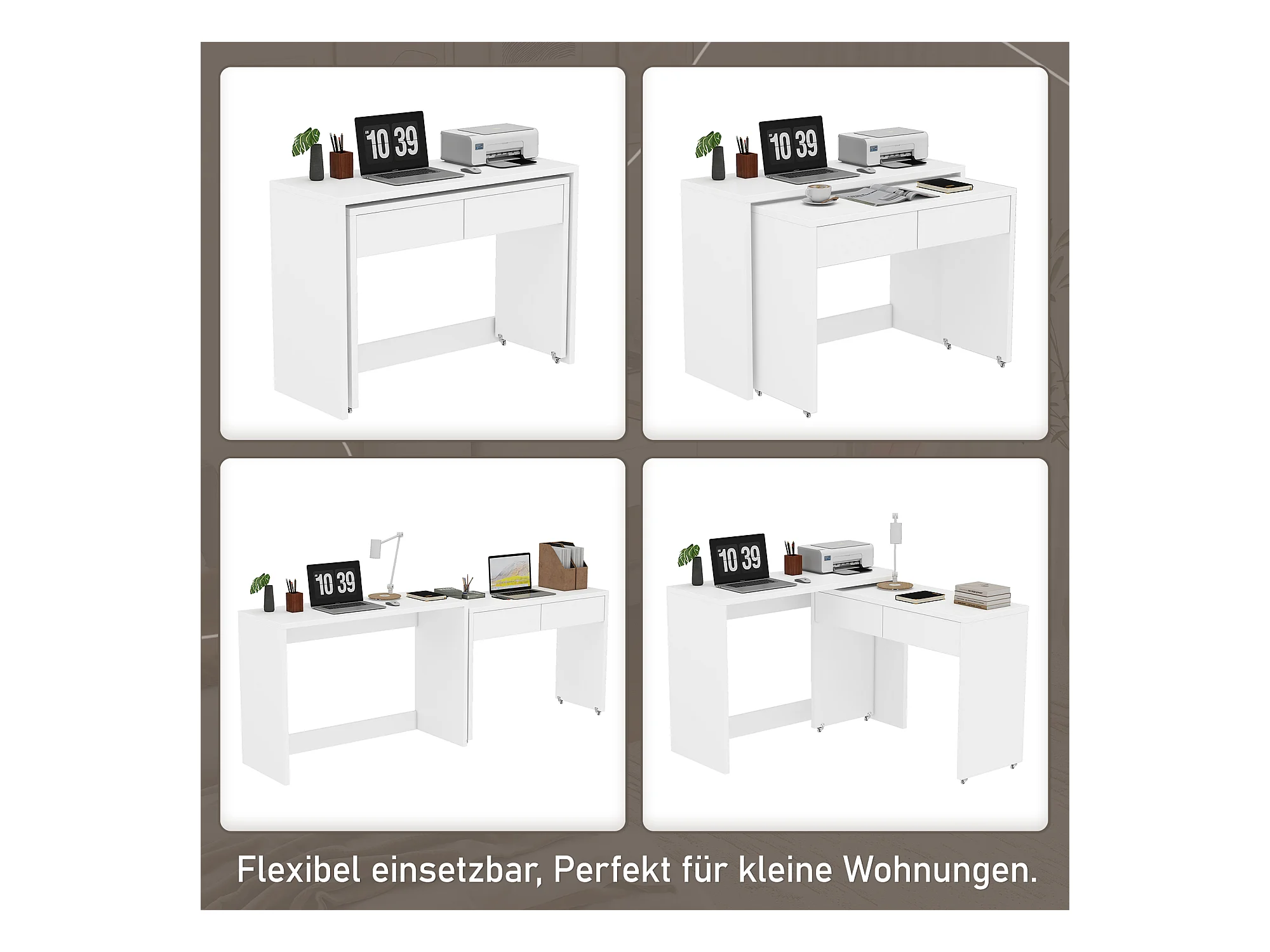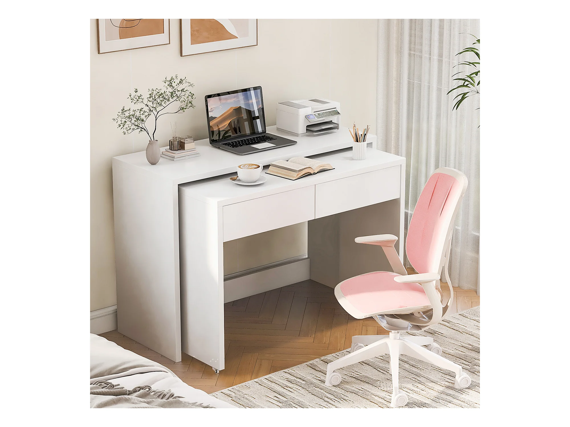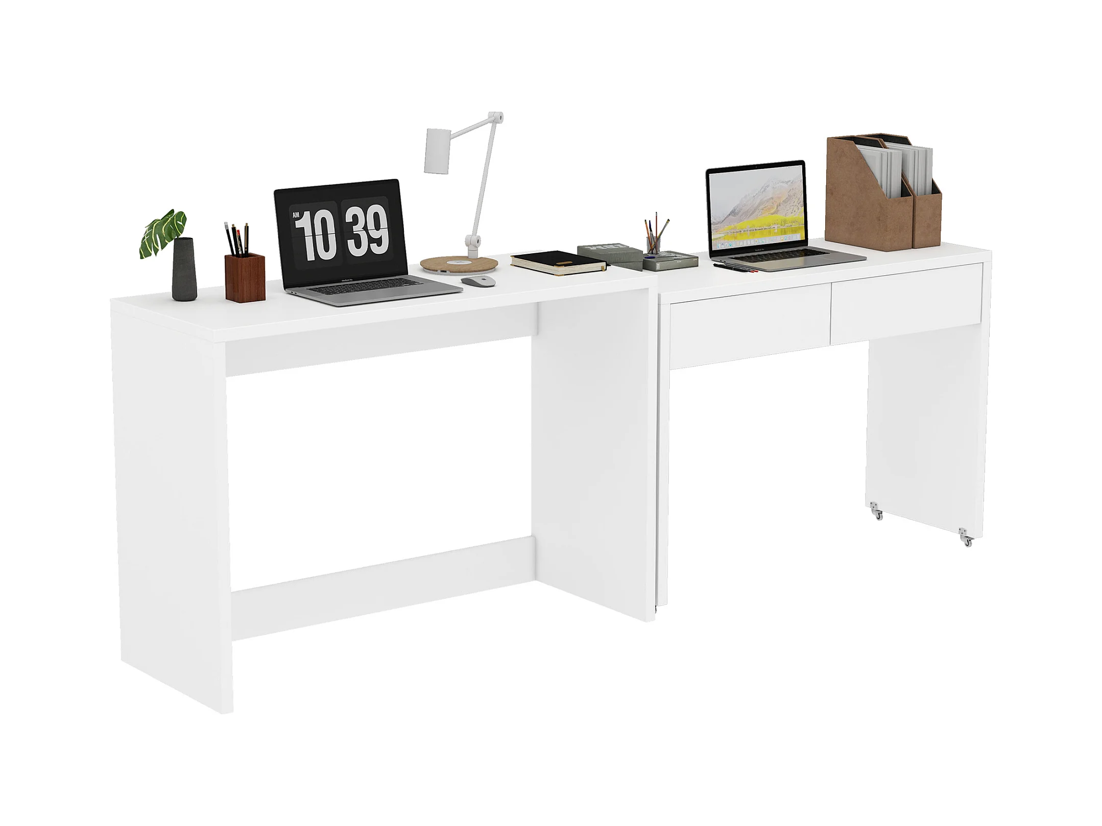 Scrivania pieghevole 2 in 1 - 110 x 40 x 78 cm - Ripiano scrivania + cassettiera 2 cassetti - truciolato - bianco