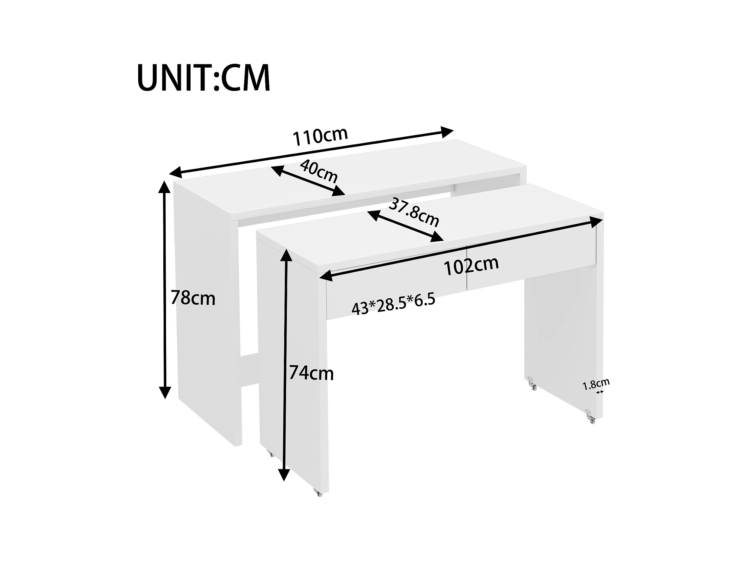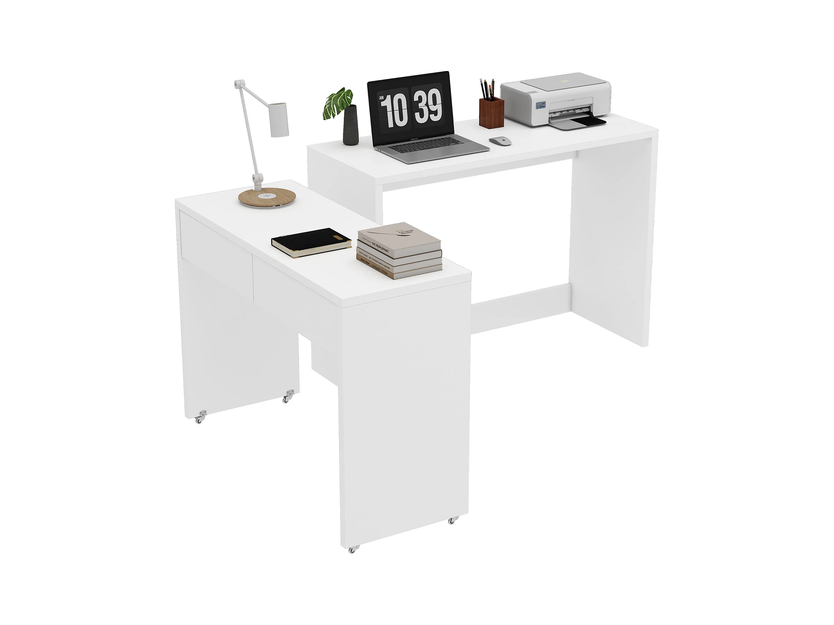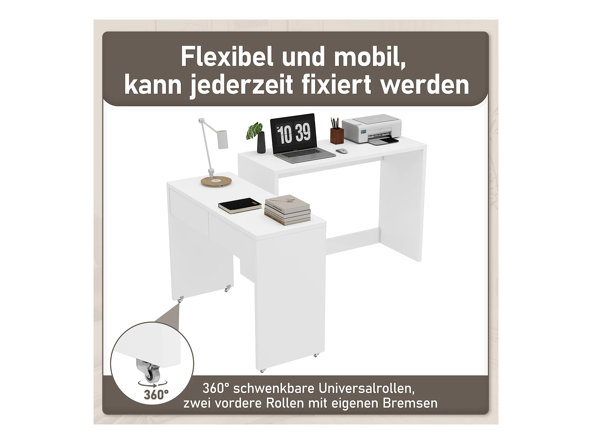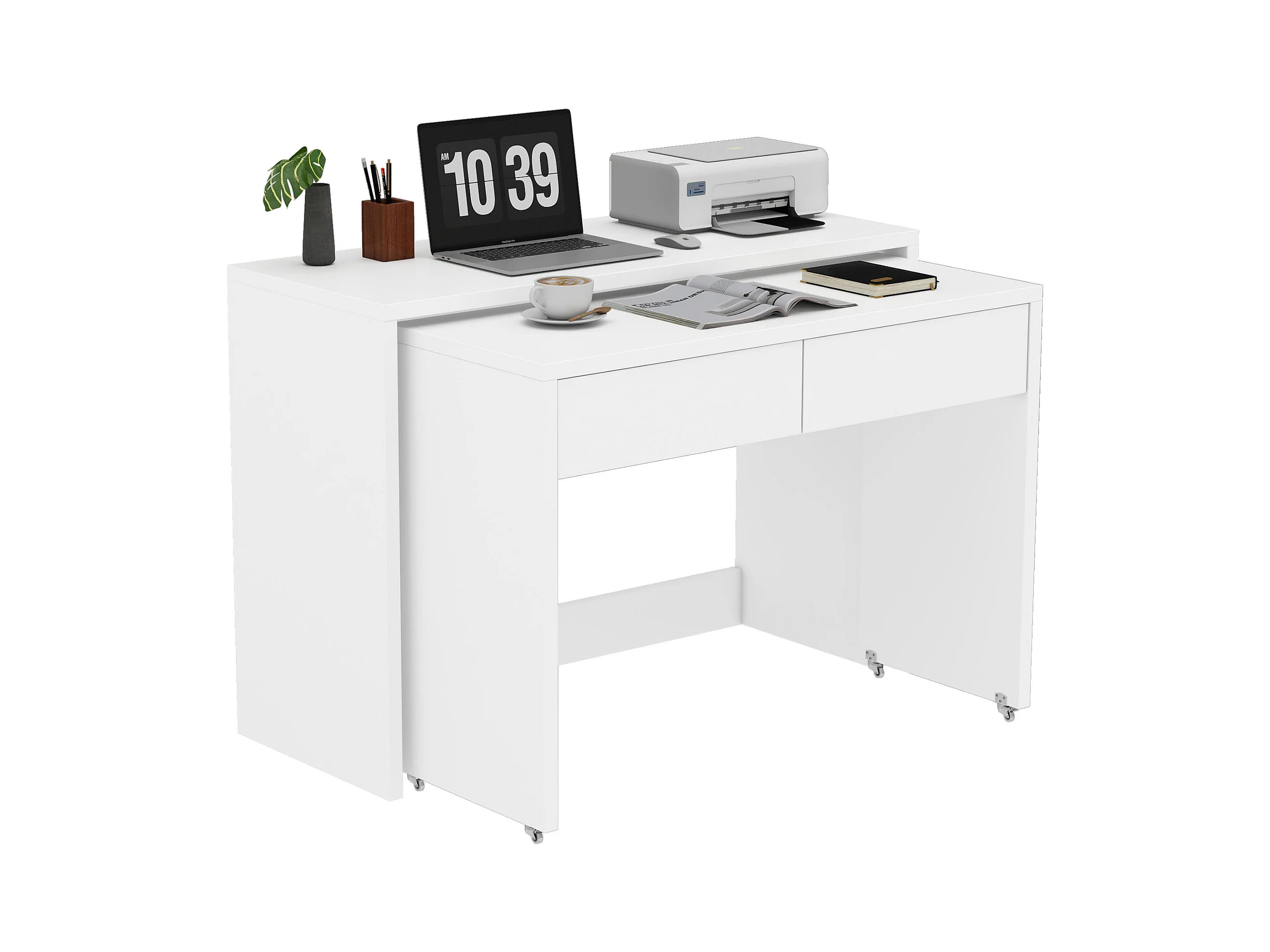 Scrivania pieghevole 2 in 1 - 110 x 40 x 78 cm - Ripiano scrivania + cassettiera 2 cassetti - truciolato - bianco