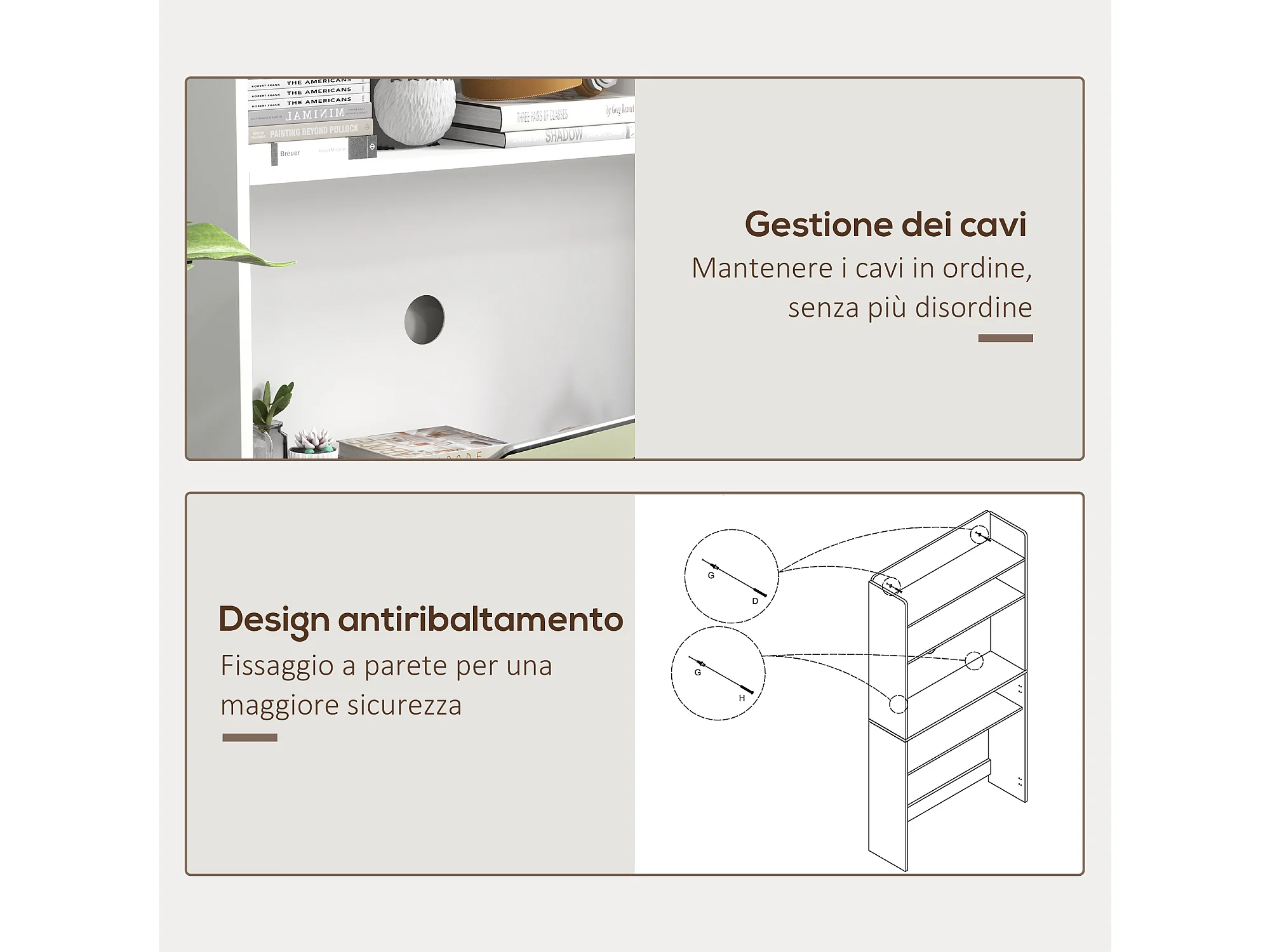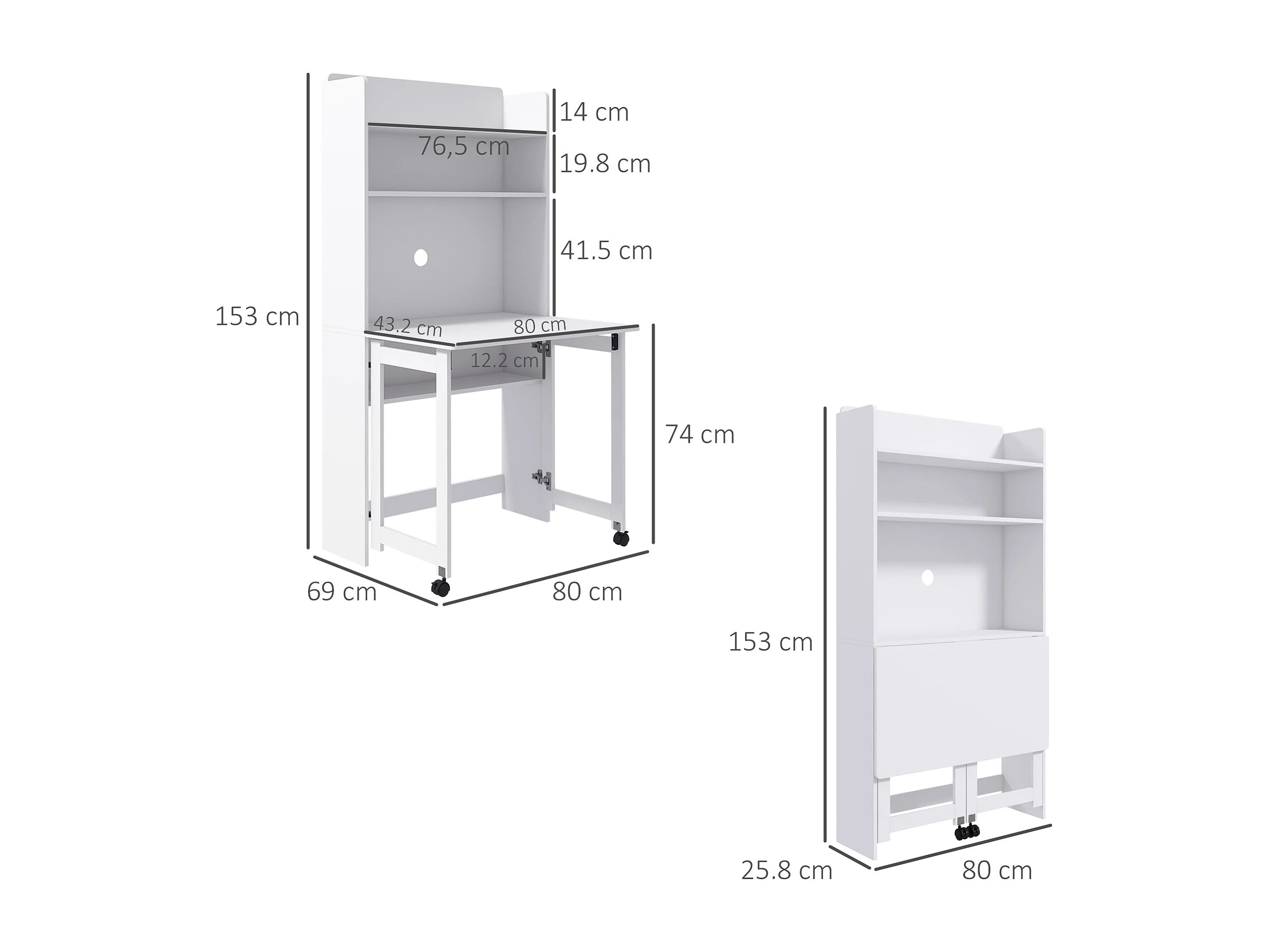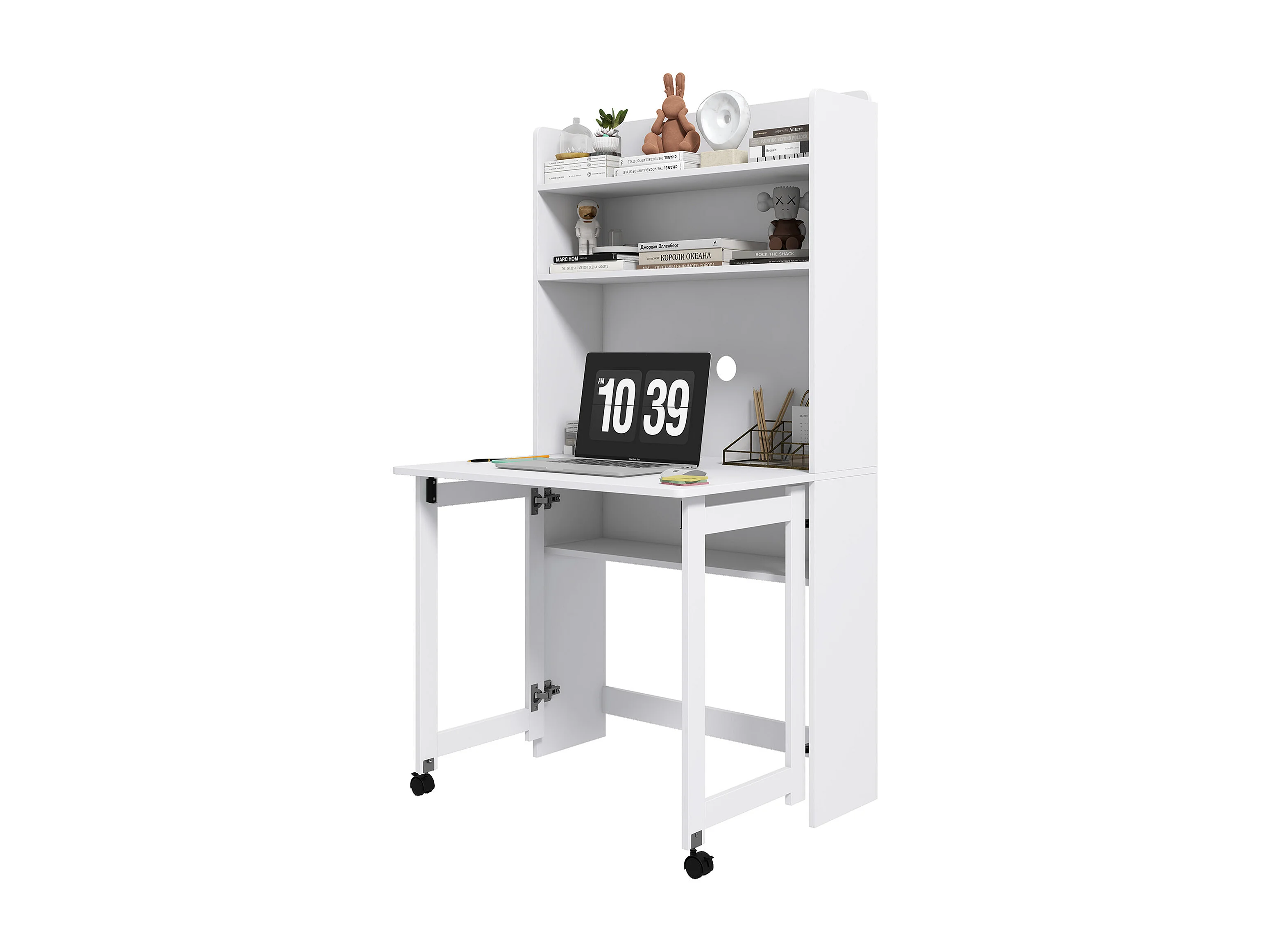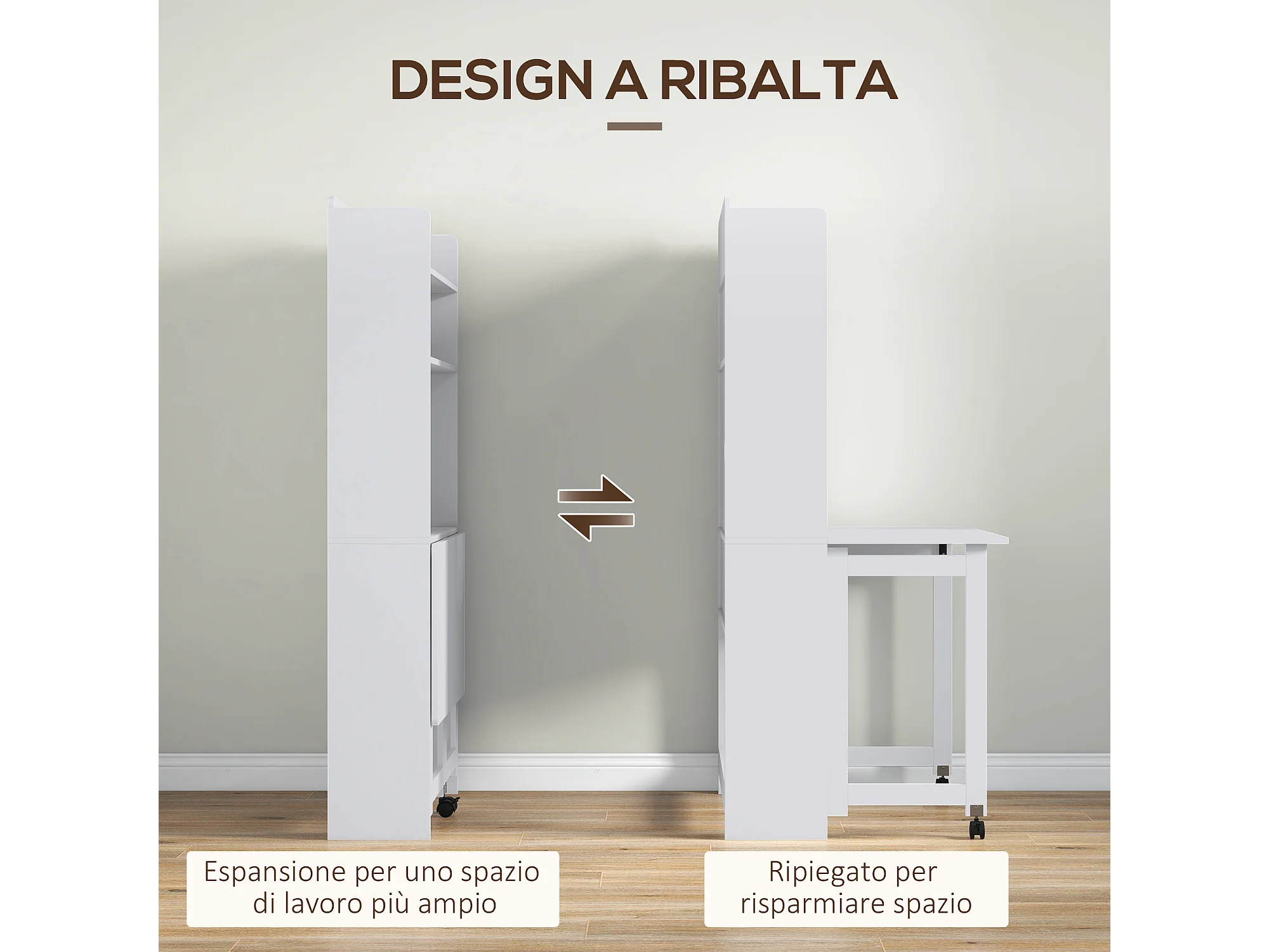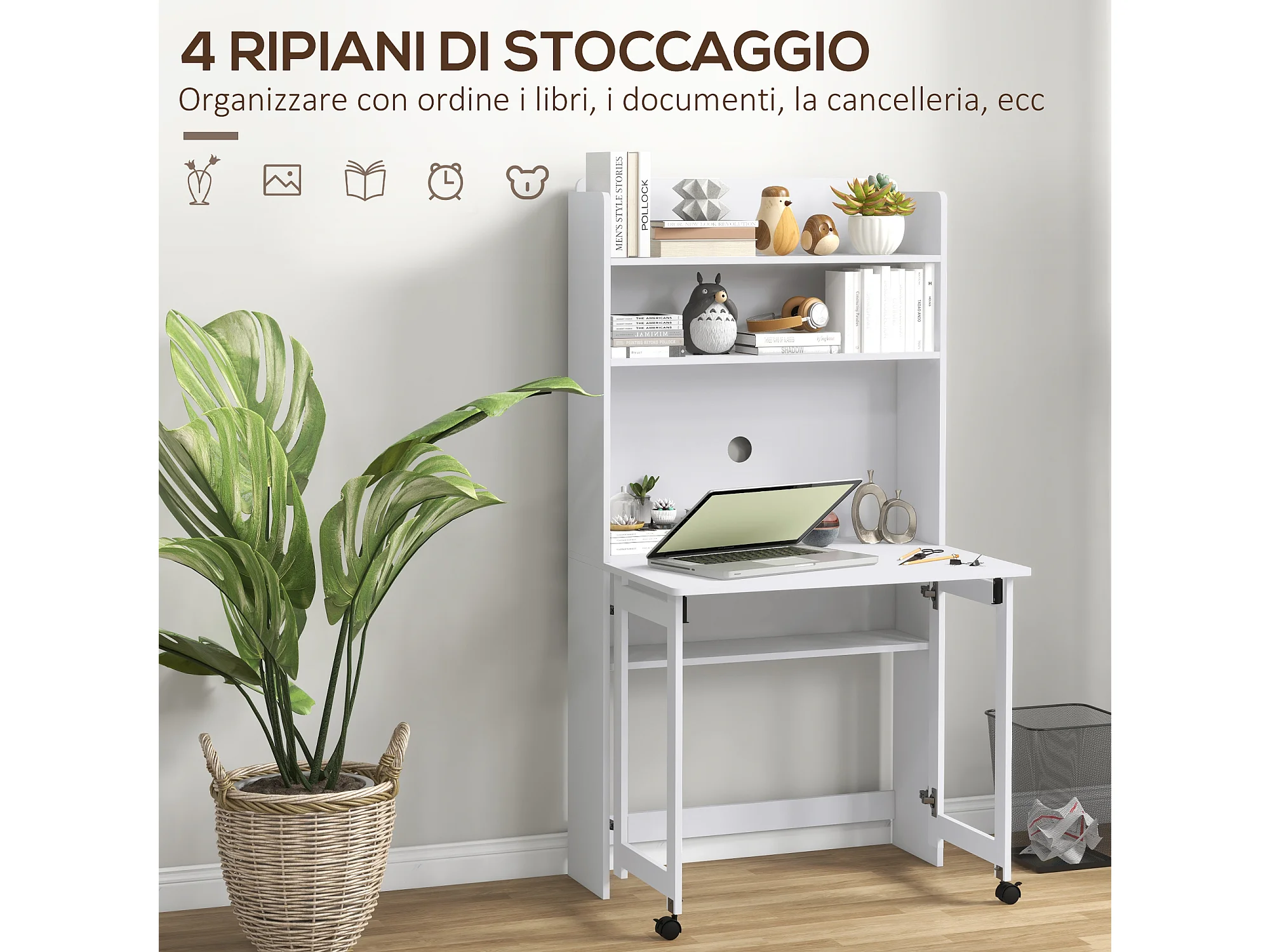 Scrivania pieghevole con libreria a 4 ripiani in legno bianco