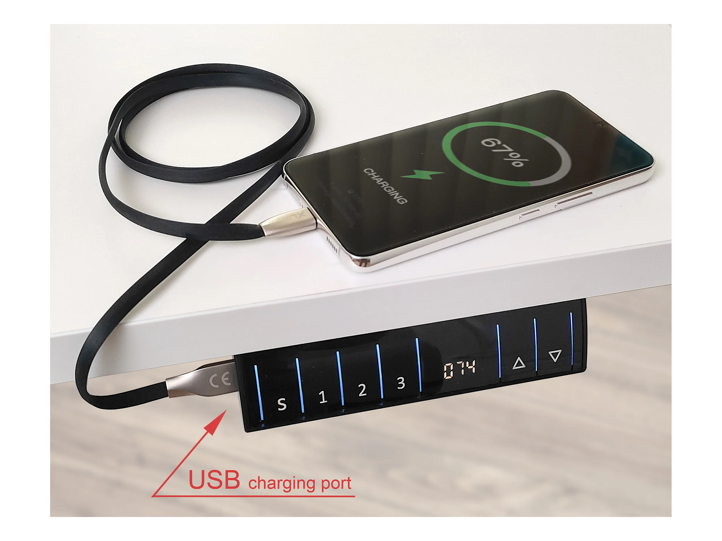 Scrivania regolabile in altezza elettricamente 140x70 nero/bianco opaco