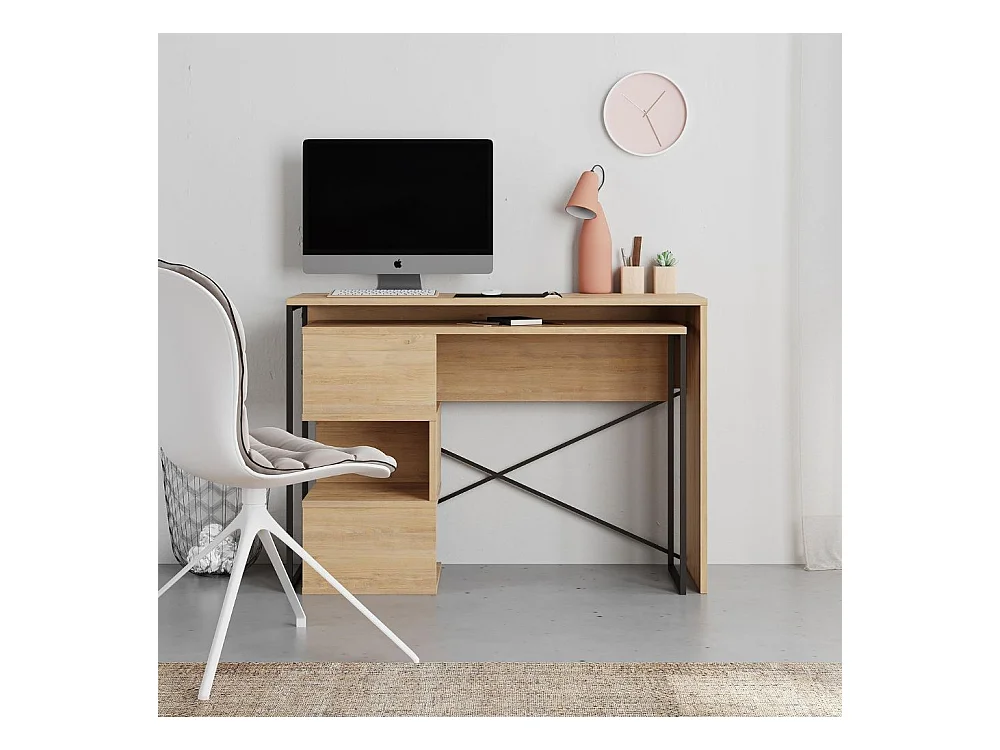 Scrivania salvaspazio espandibile Badau rovere con struttura in metallo nero – Funzionalità e Stile