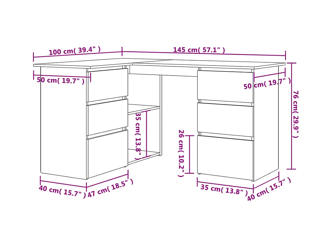 Scrivania tavolo postazione di lavoro mobile per computer angolo IT studio sonoma 145 x 100 x 76 cm derivati del legno grigio 02_0023695
