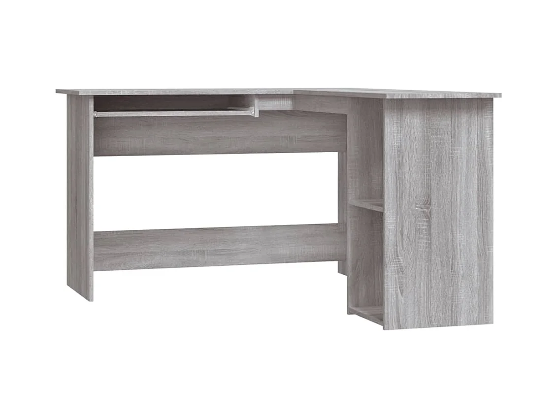 Scrivania tavolo postazione di lavoro mobile per computer angolo IT studio a forma di L in derivati del legno grigio 02_0023684