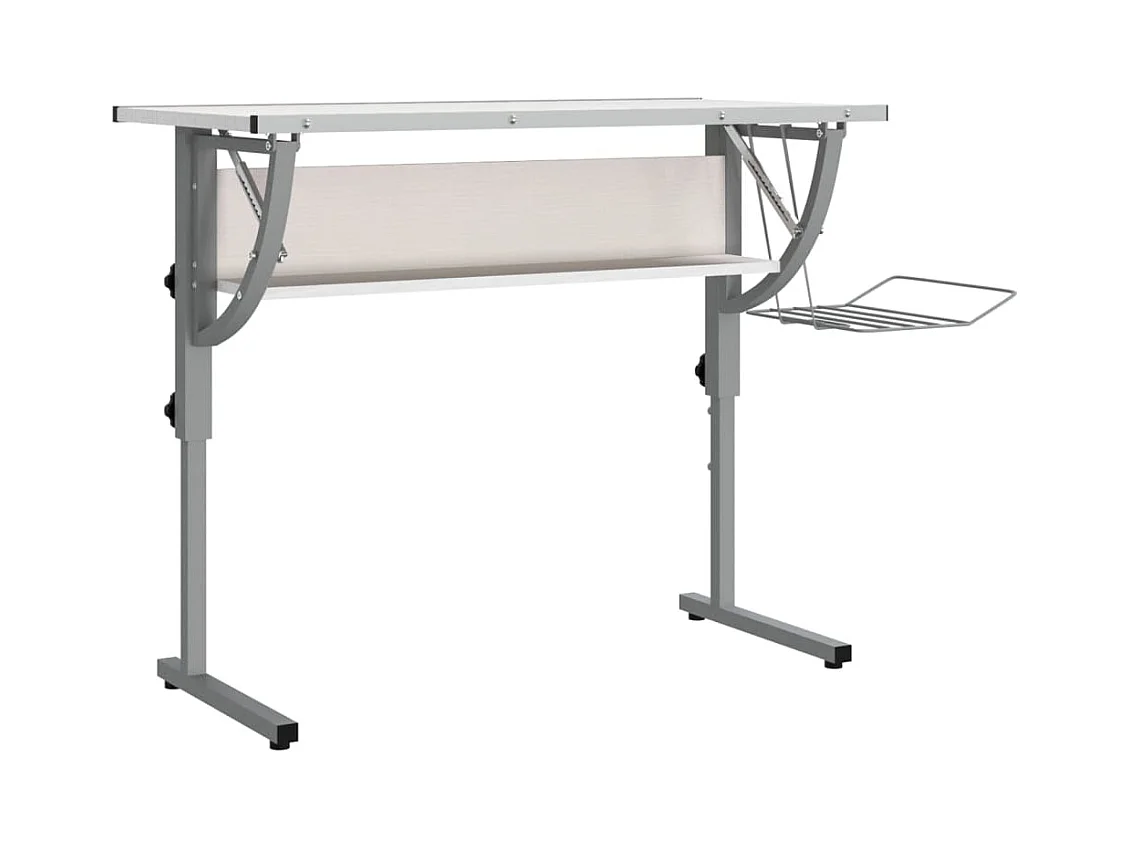 Scrivania tavolo postazione di lavoro mobile per computer IT studio artigianale e 110 x 53 x (58-87) cm bianco 02_0023698