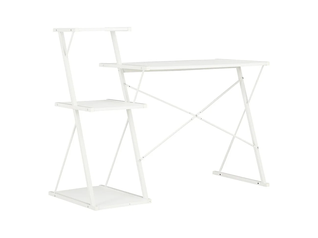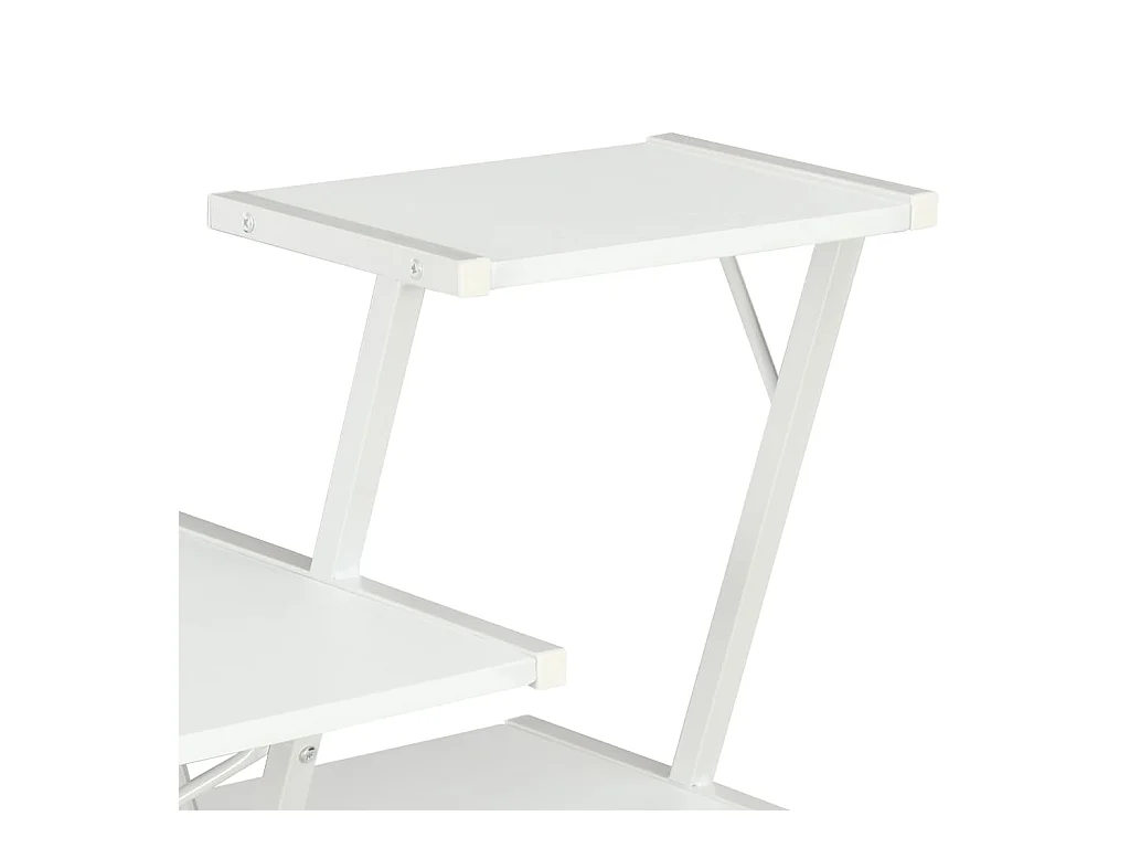 Scrivania con ripiani postazione tavolo da ufficio pannello in fibra di legno melaminico e metallo 122 x 120 x 64 cm bianco 03_0001139