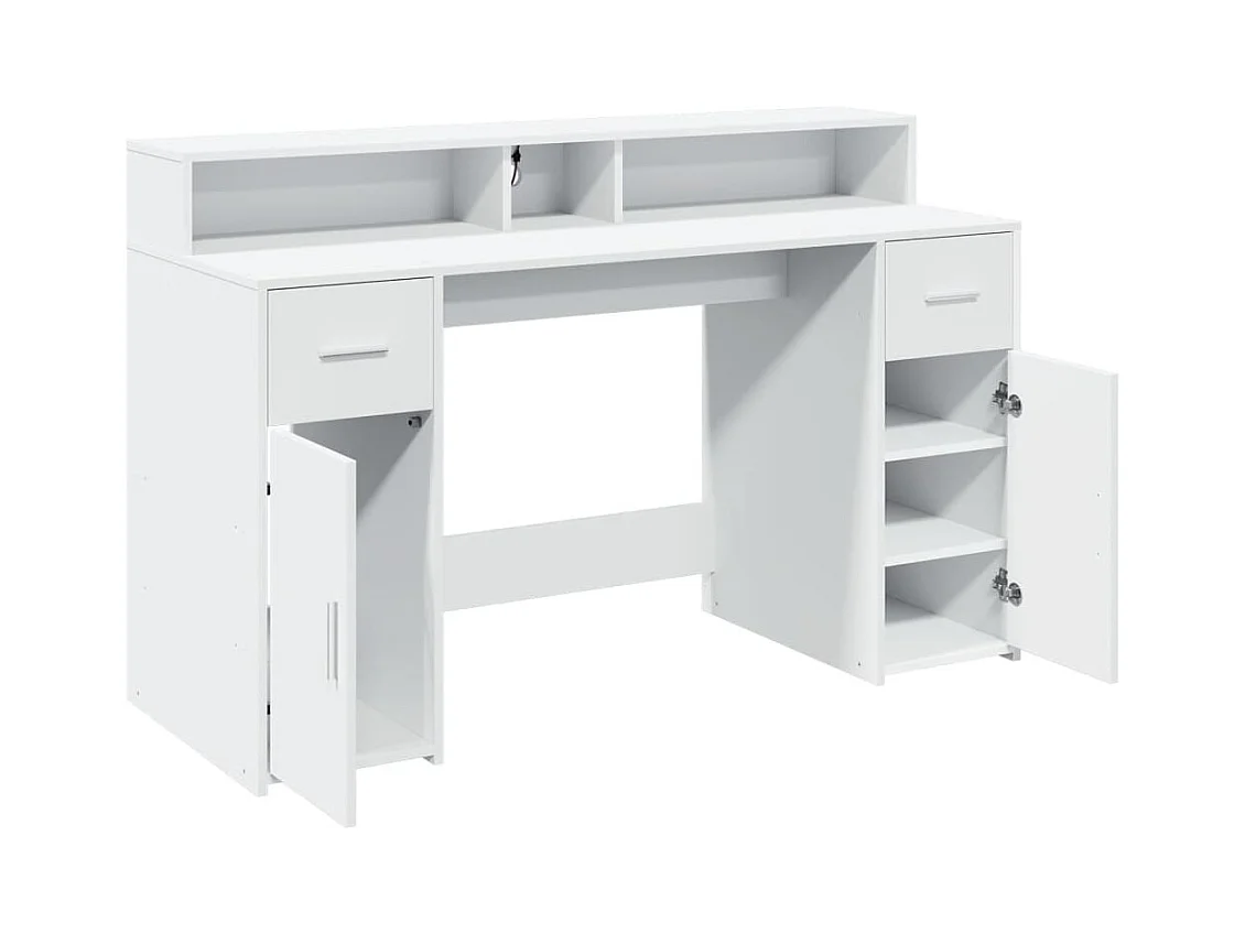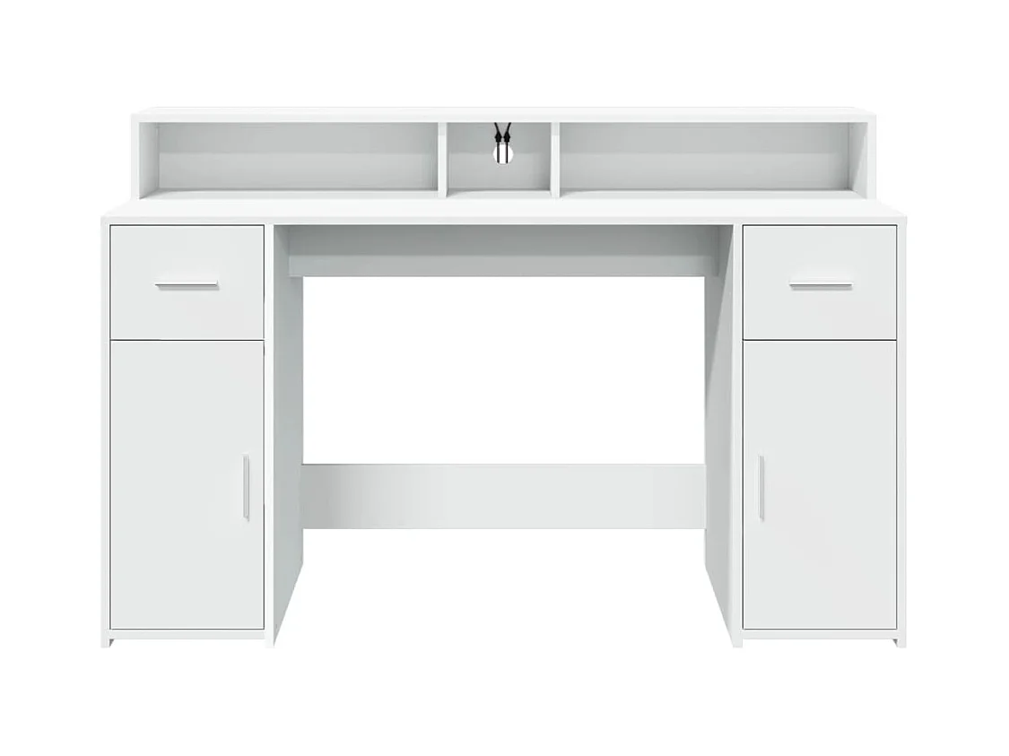 Scrivania tavolo postazione mobile porta computer studio con luci LED 140 x 55 x 91 cm pannelli in derivati bianco 02_0023406