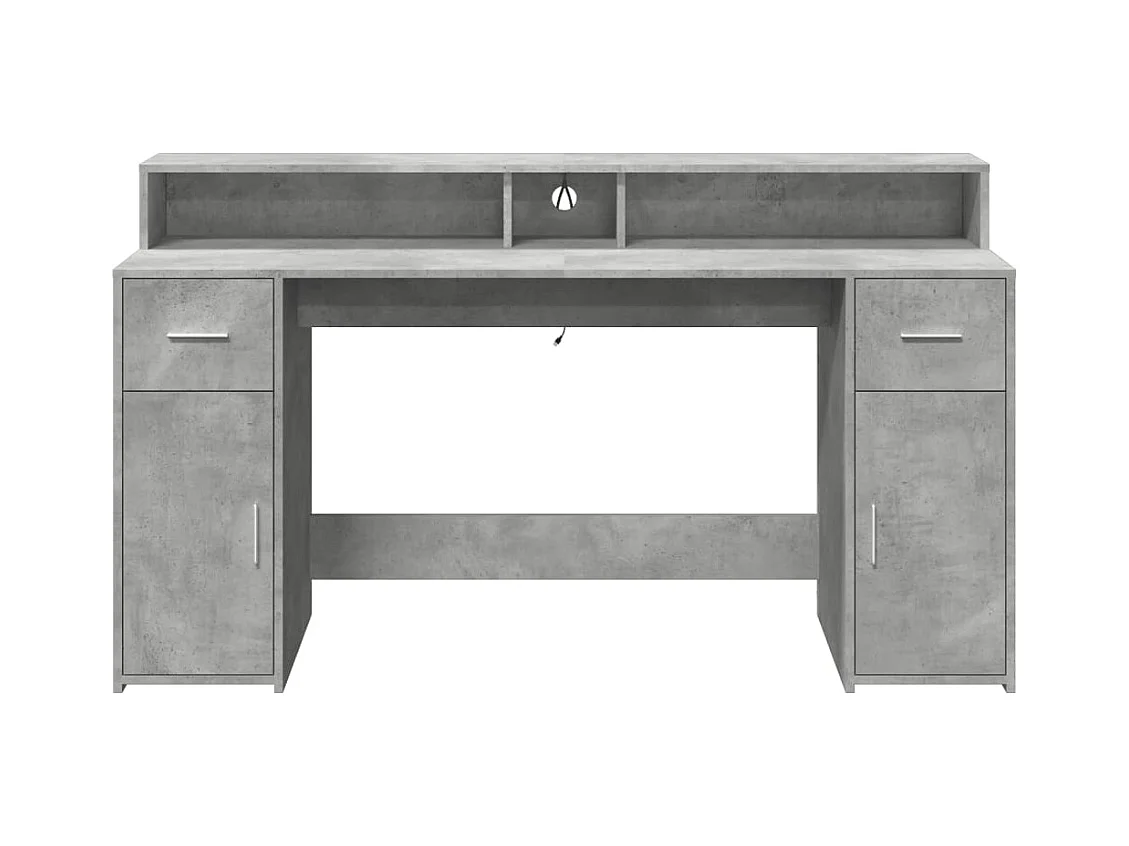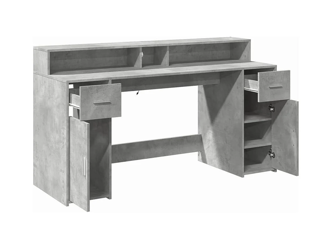 Scrivania tavolo postazione mobile porta computer studio e luci LED 160 x 55 x 91 cm multistrato grigio 02_0023801