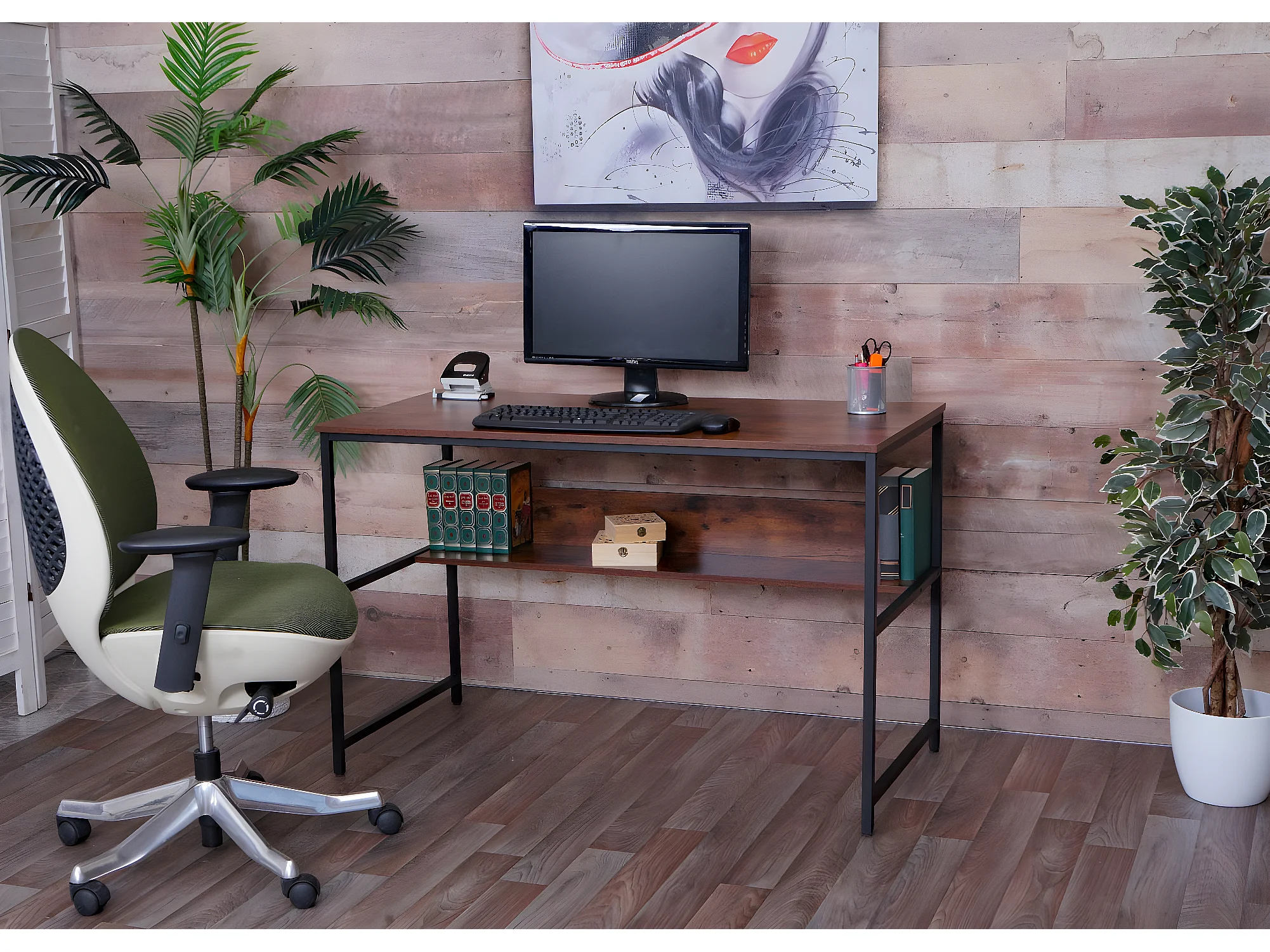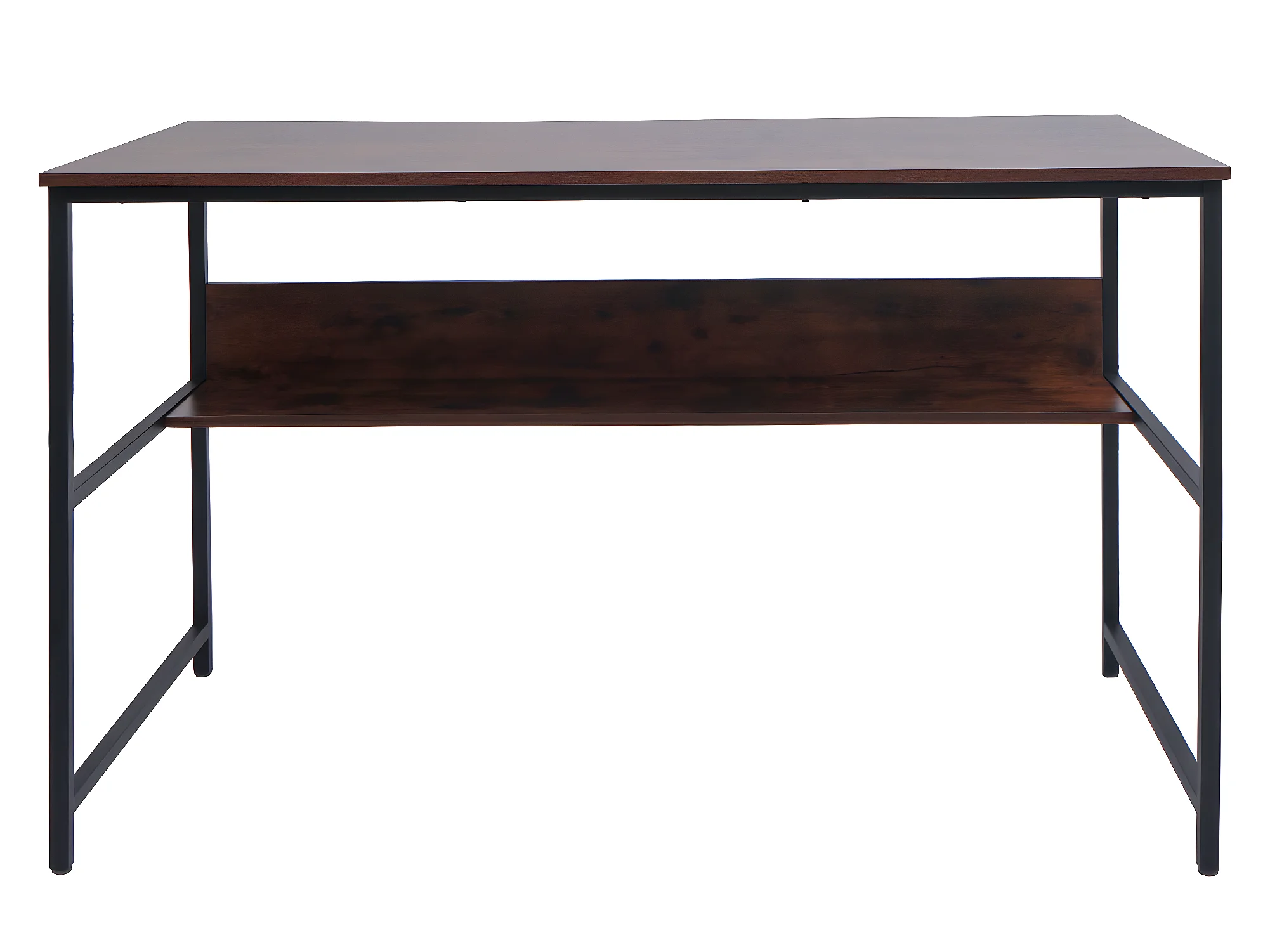 Scrivania tavolo tavolino ufficio HWC-K80 metallo MDF melaminico 120x60cm legno scuro