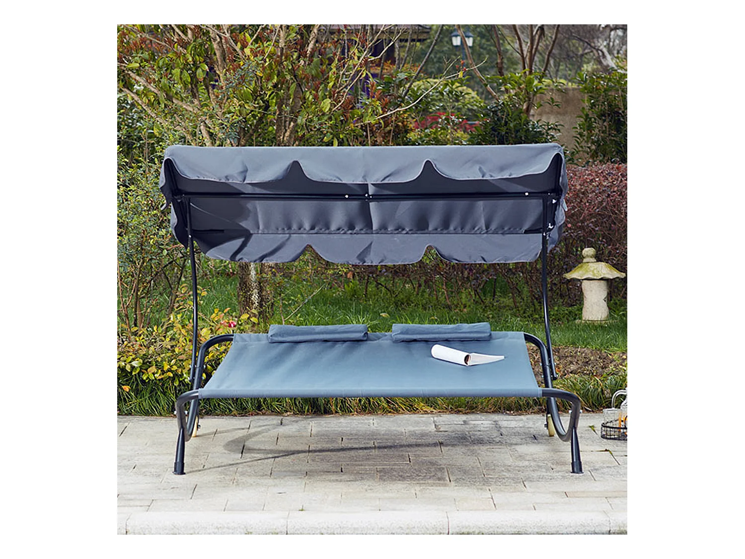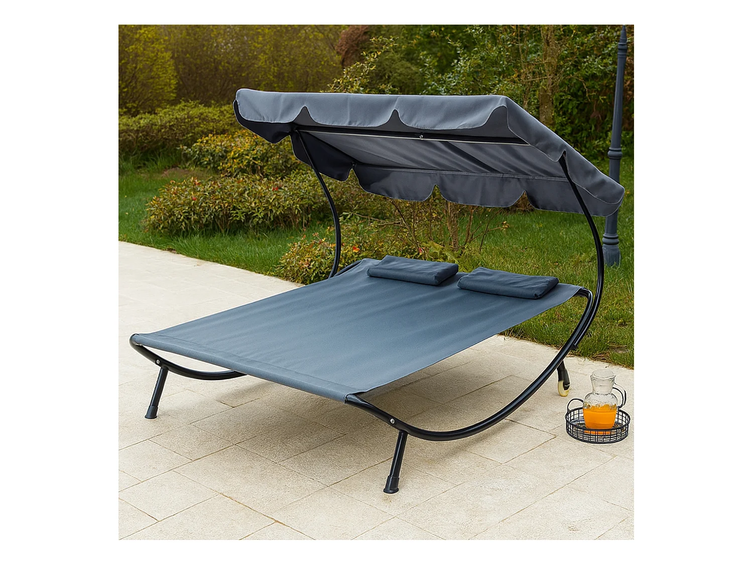 Sdraio 2 posti con parasole in tessuto Oxford grigia ALOHA