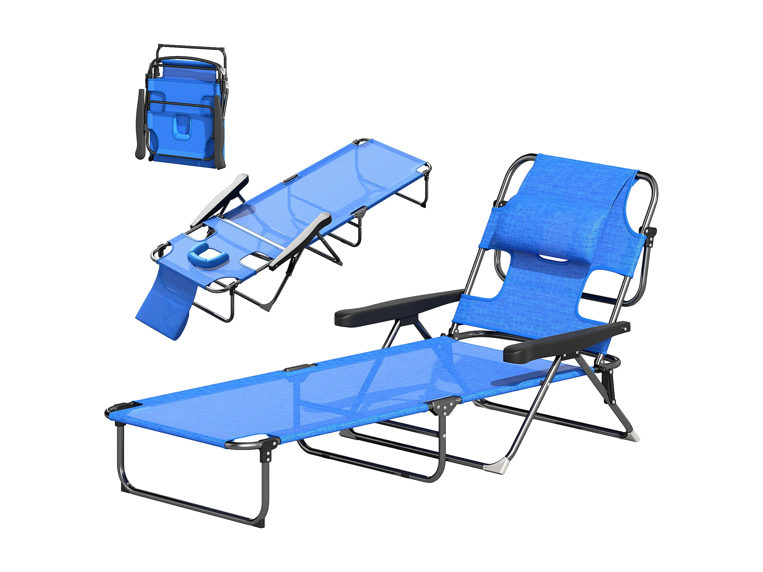 Sdraio da giardino pieghevole con schienale regolabile e foro per viso