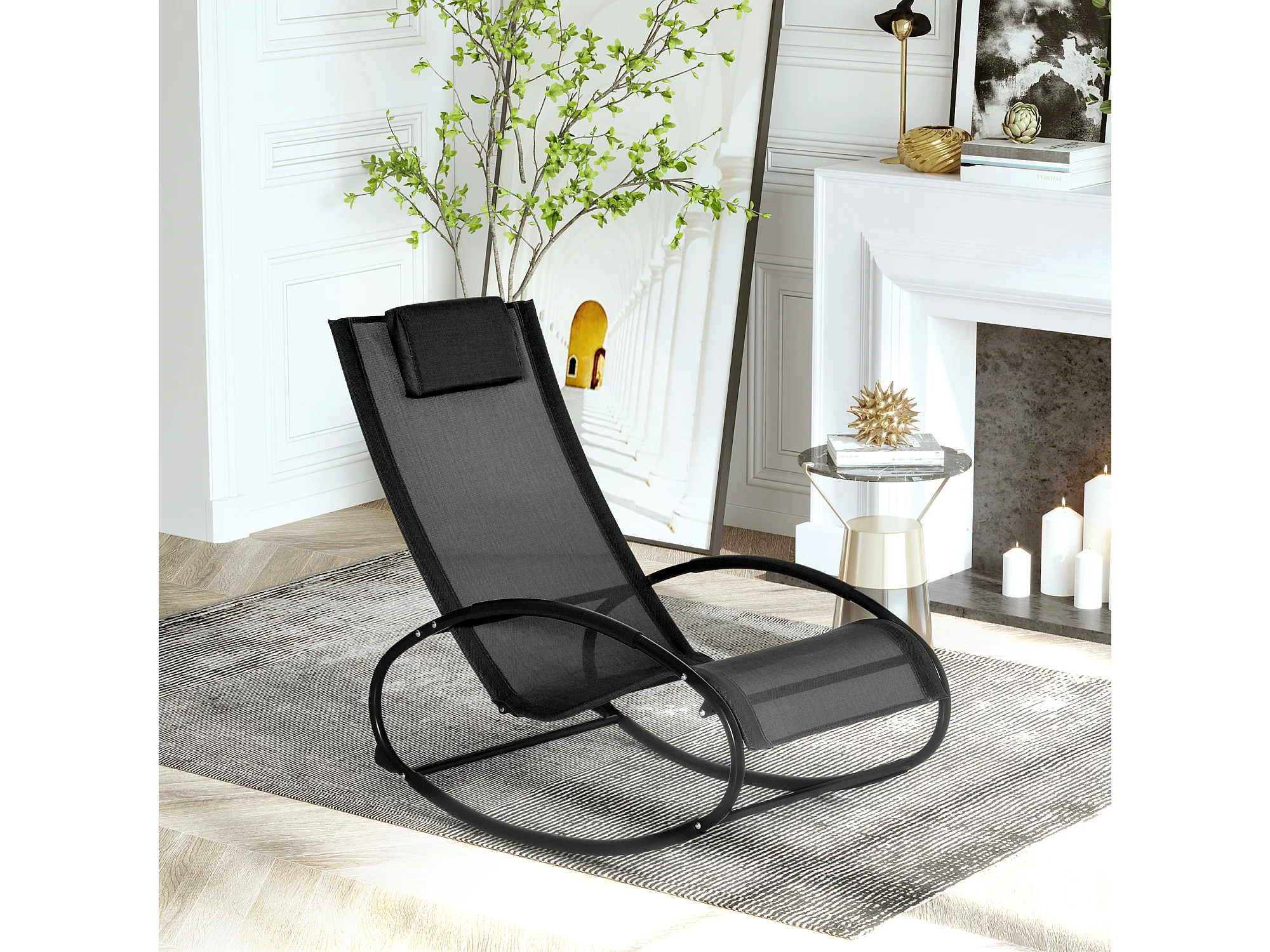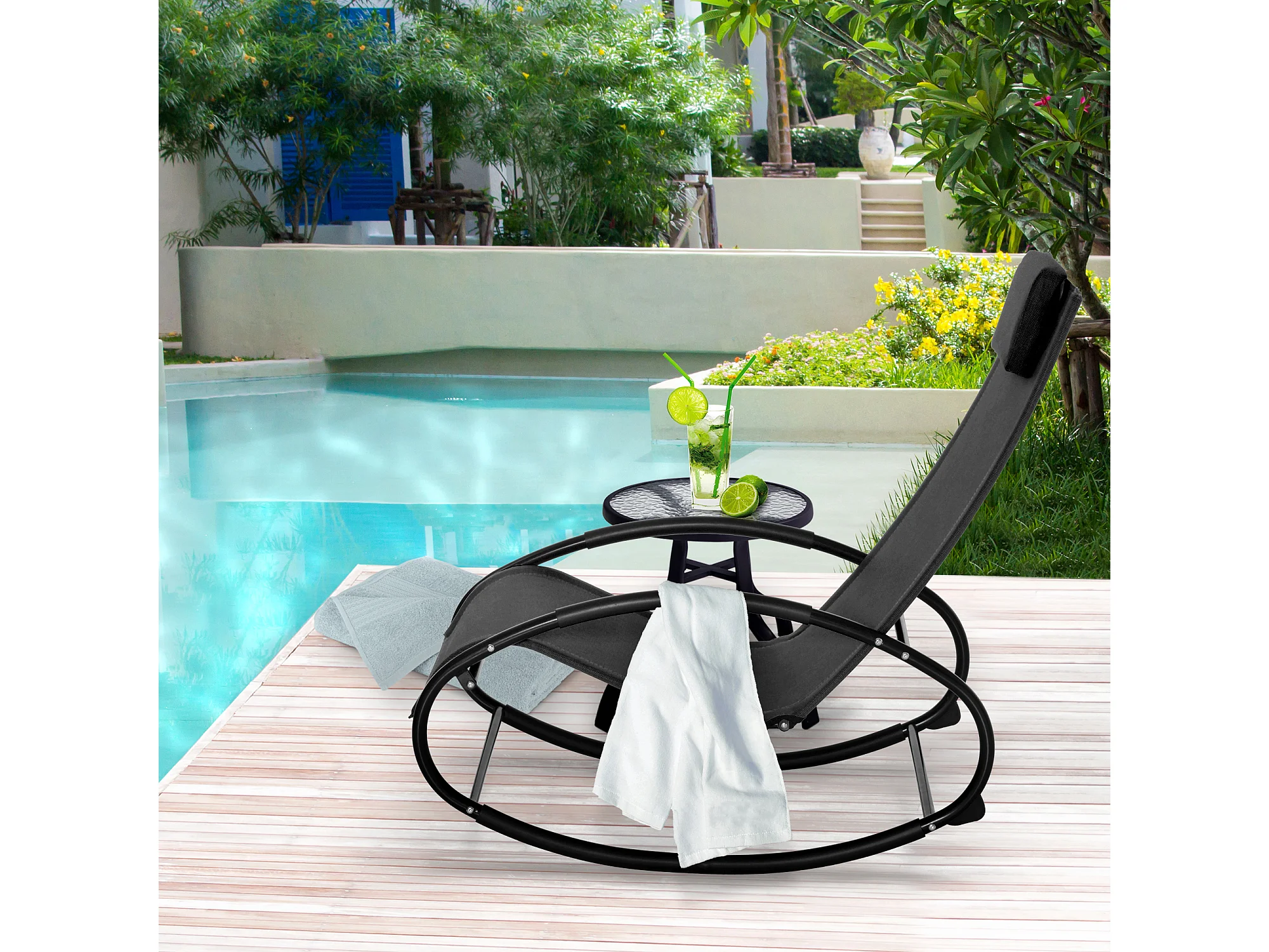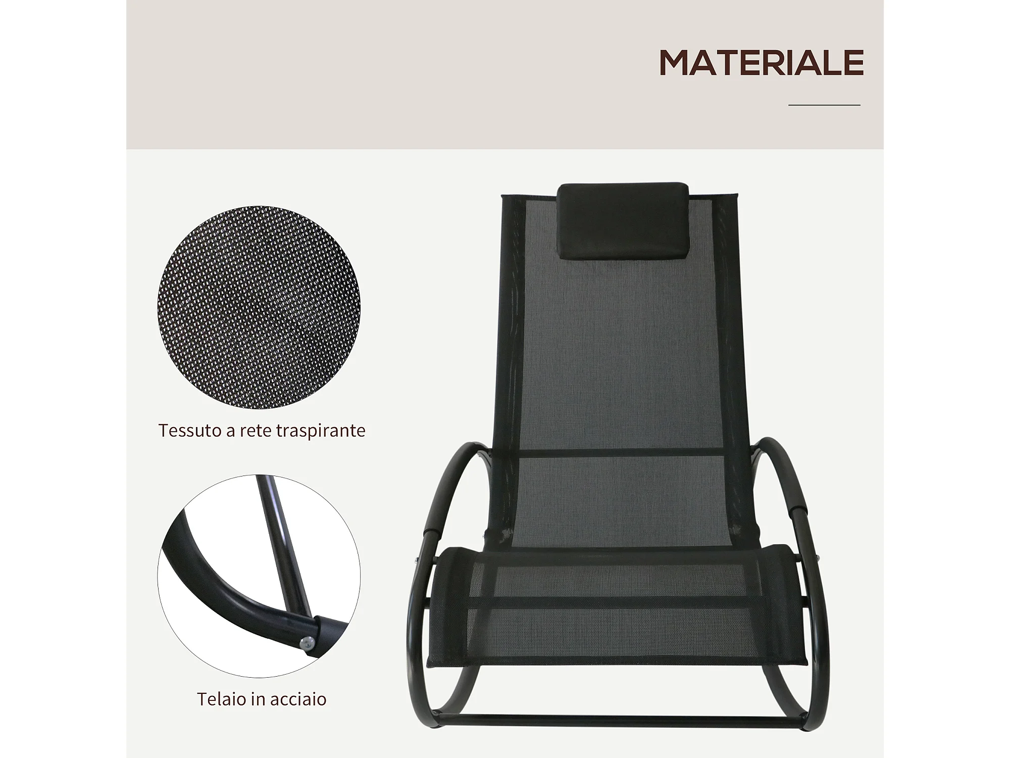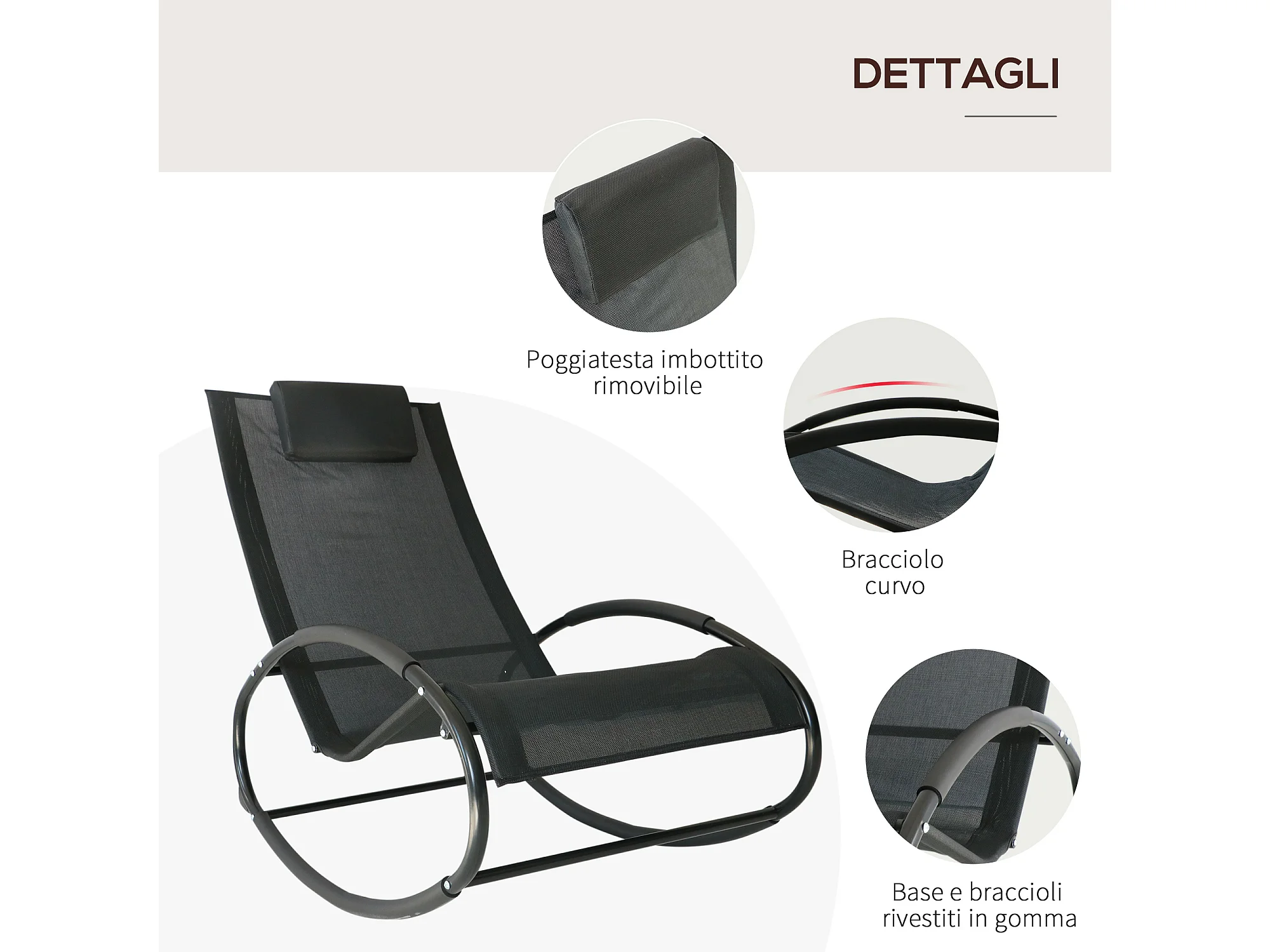 Sdraio da giardino zero gravity a dondolo cuscino nera