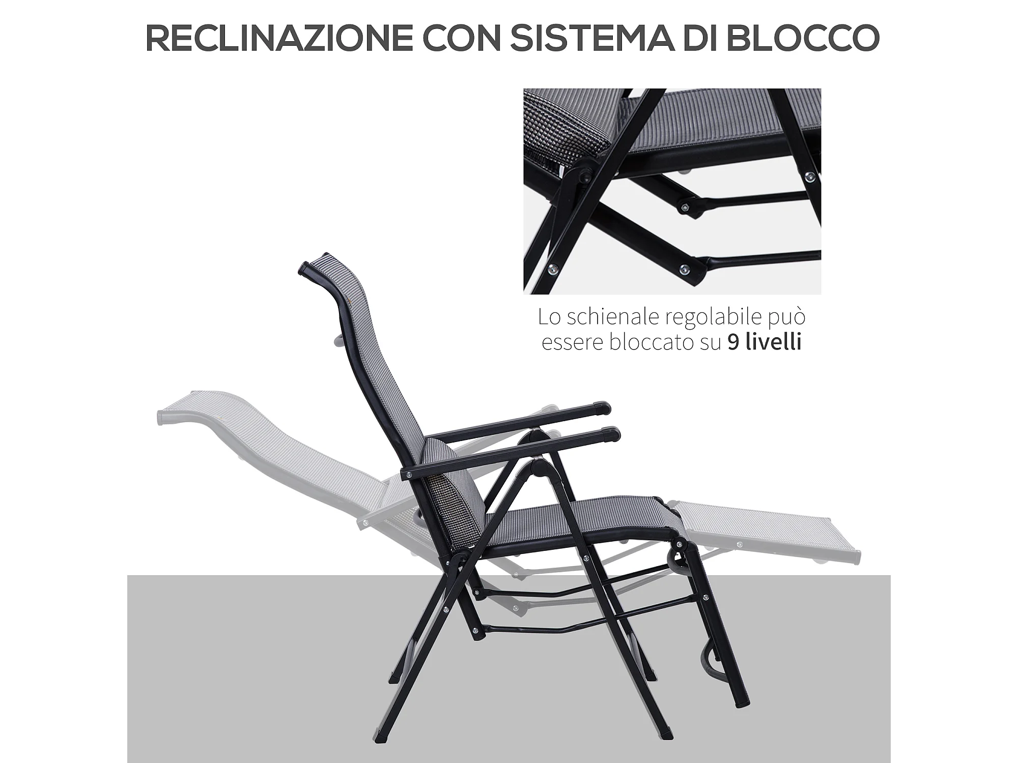 Sdraio da giardino zero gravity set 2 pz schienale 9 livelli