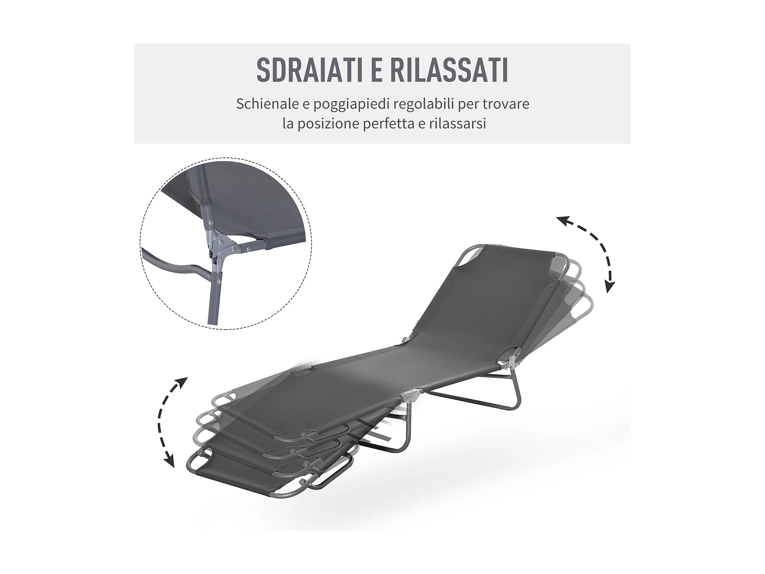 Sdraio Pieghevole con Schienale Regolabile in Tessuto Oxford per Giardino Spiaggia Piscina