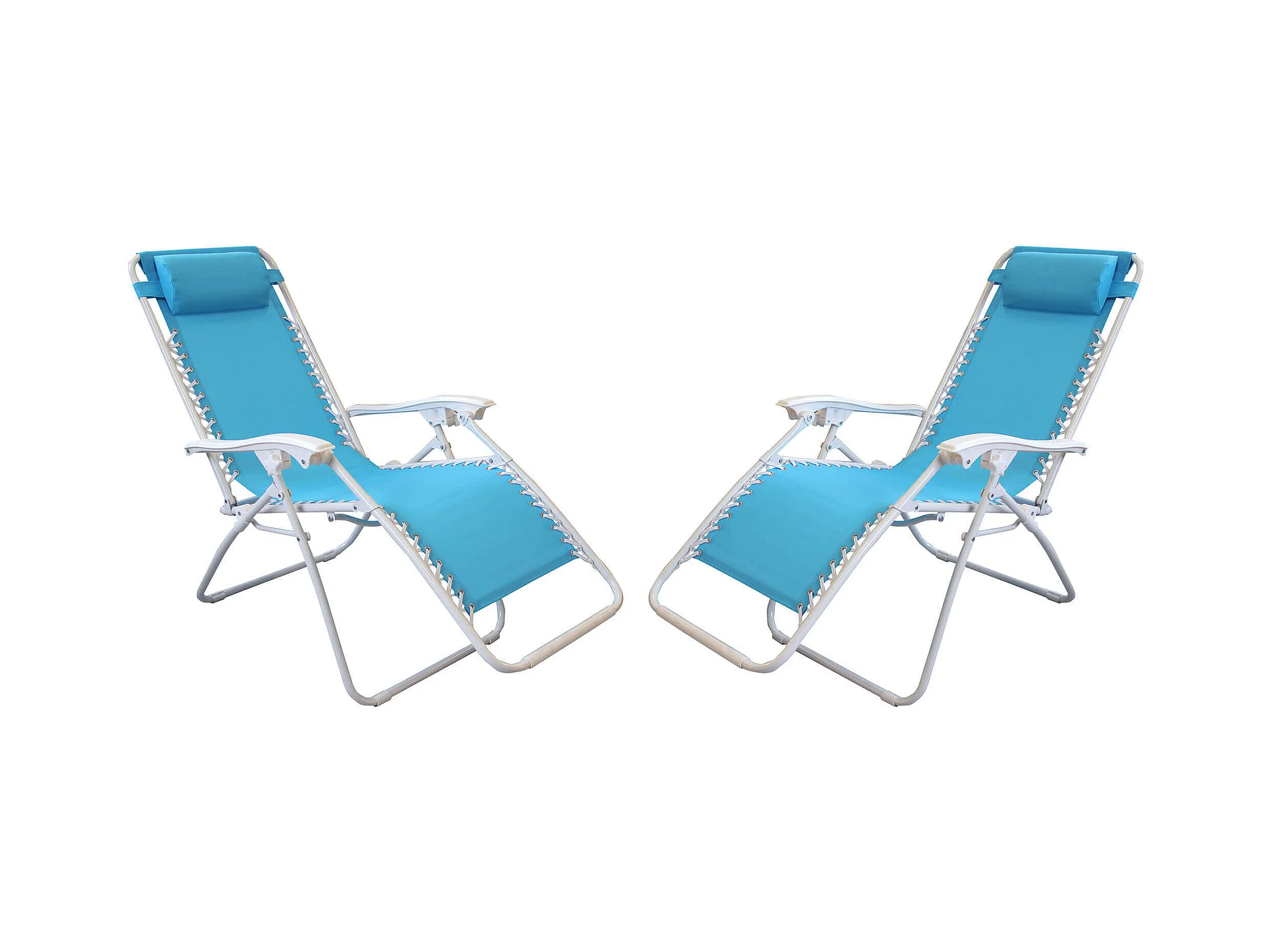 MilaniHome.it - Sdraio Pieghevole Con Struttura Bianca E Textilene Blu Per Campeggio Spiaggia Mare Piscina Giardinodi coloreAzzurro