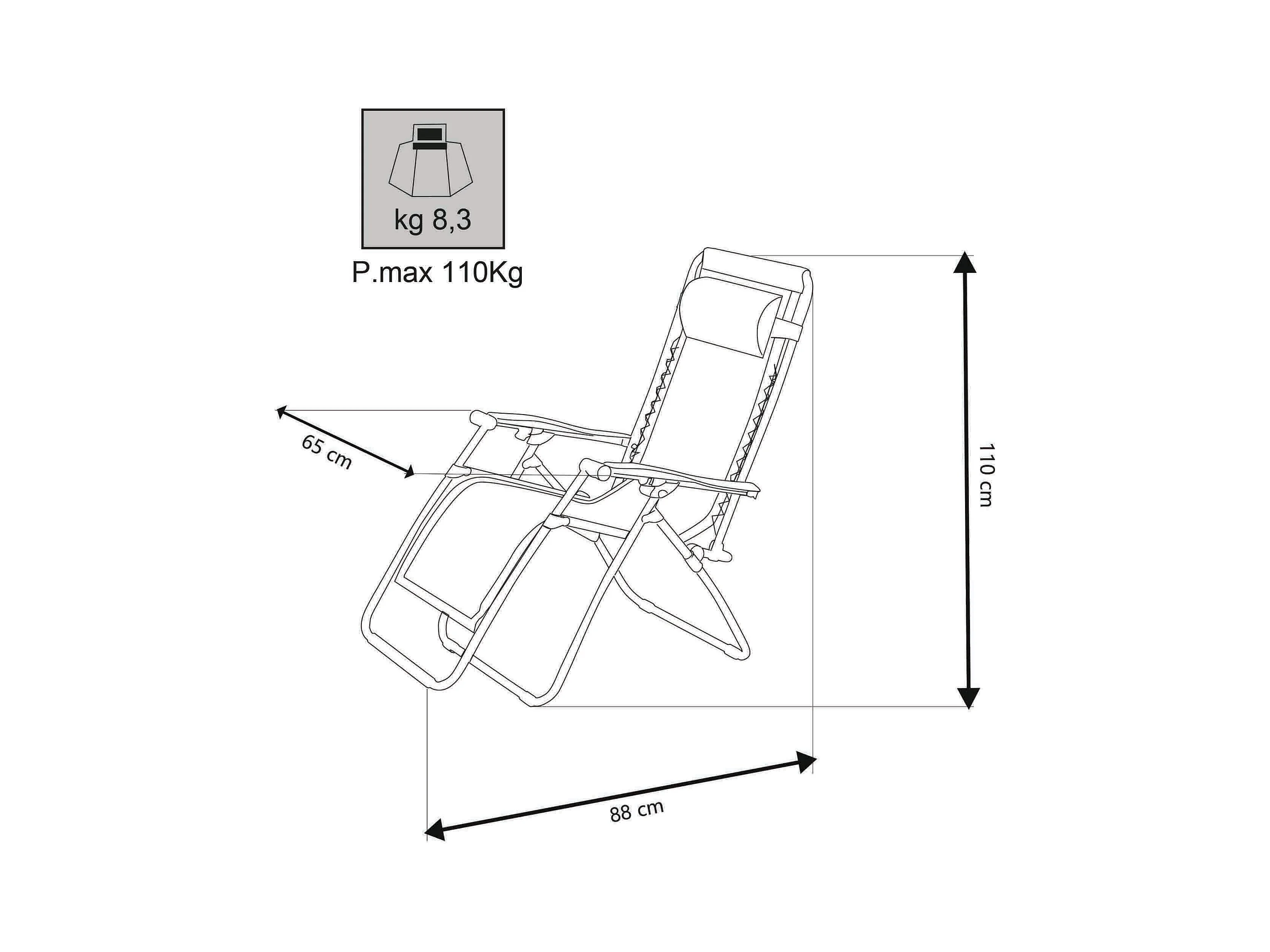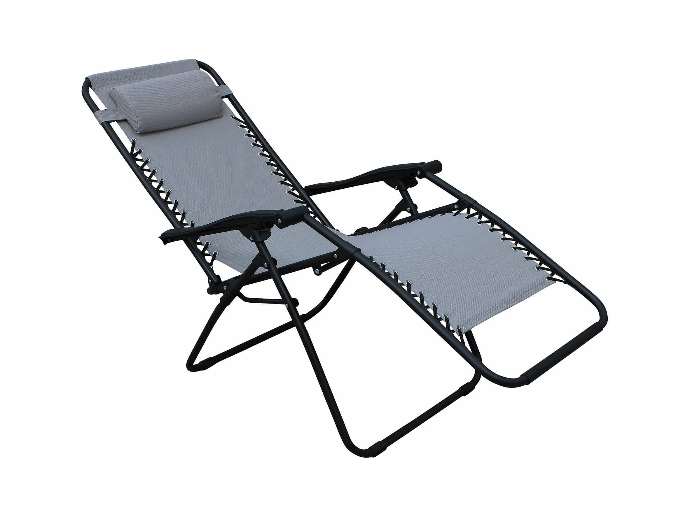 Poltrona pieghevole regolabile con cuscino, metallo e tessuto, grigia (137x63,5x100,5cm)