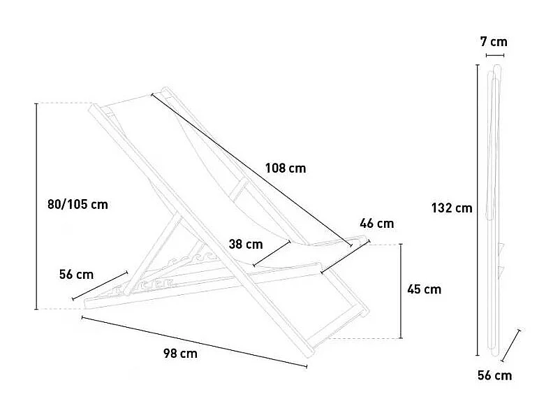 Sdraio pieghevole leggera e confortevole multi-posizione Cancún