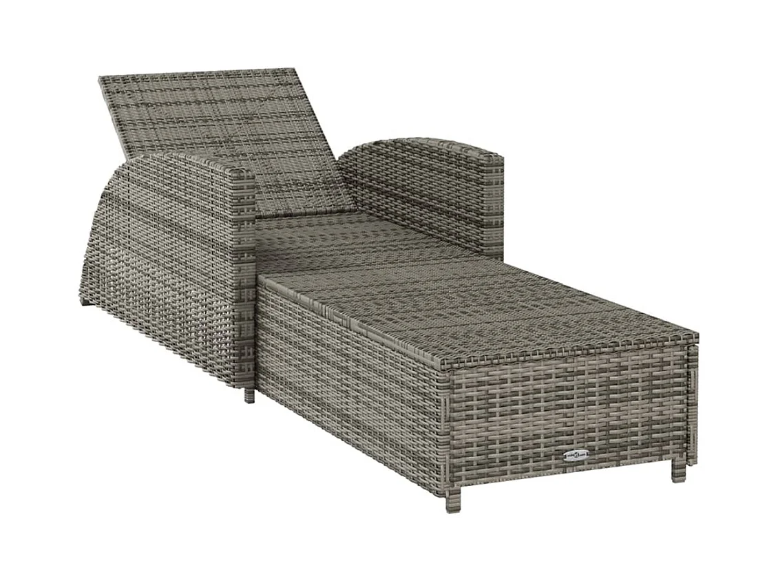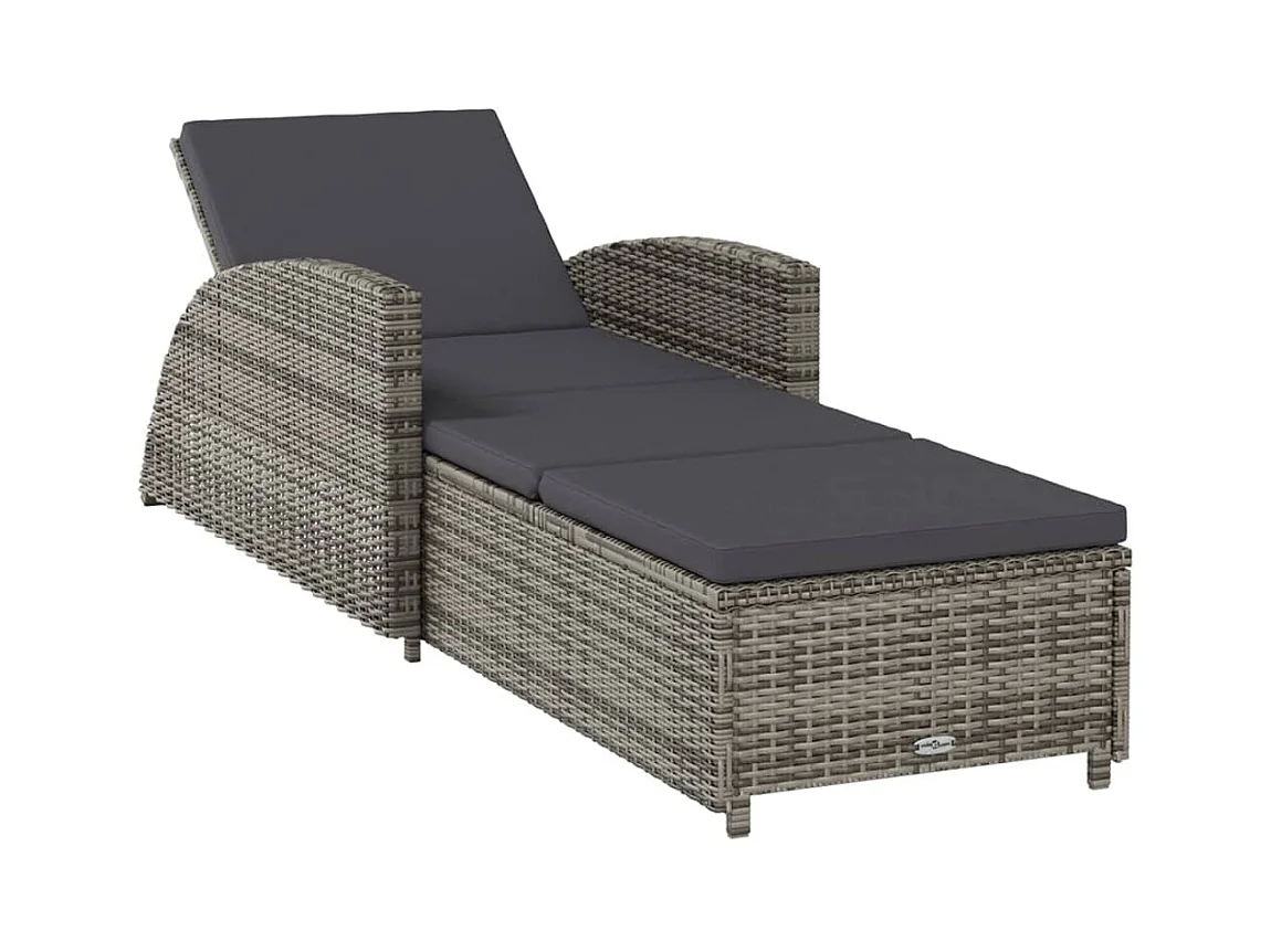 Lettino Prendisole con Cuscino Grigio in Polyrattan