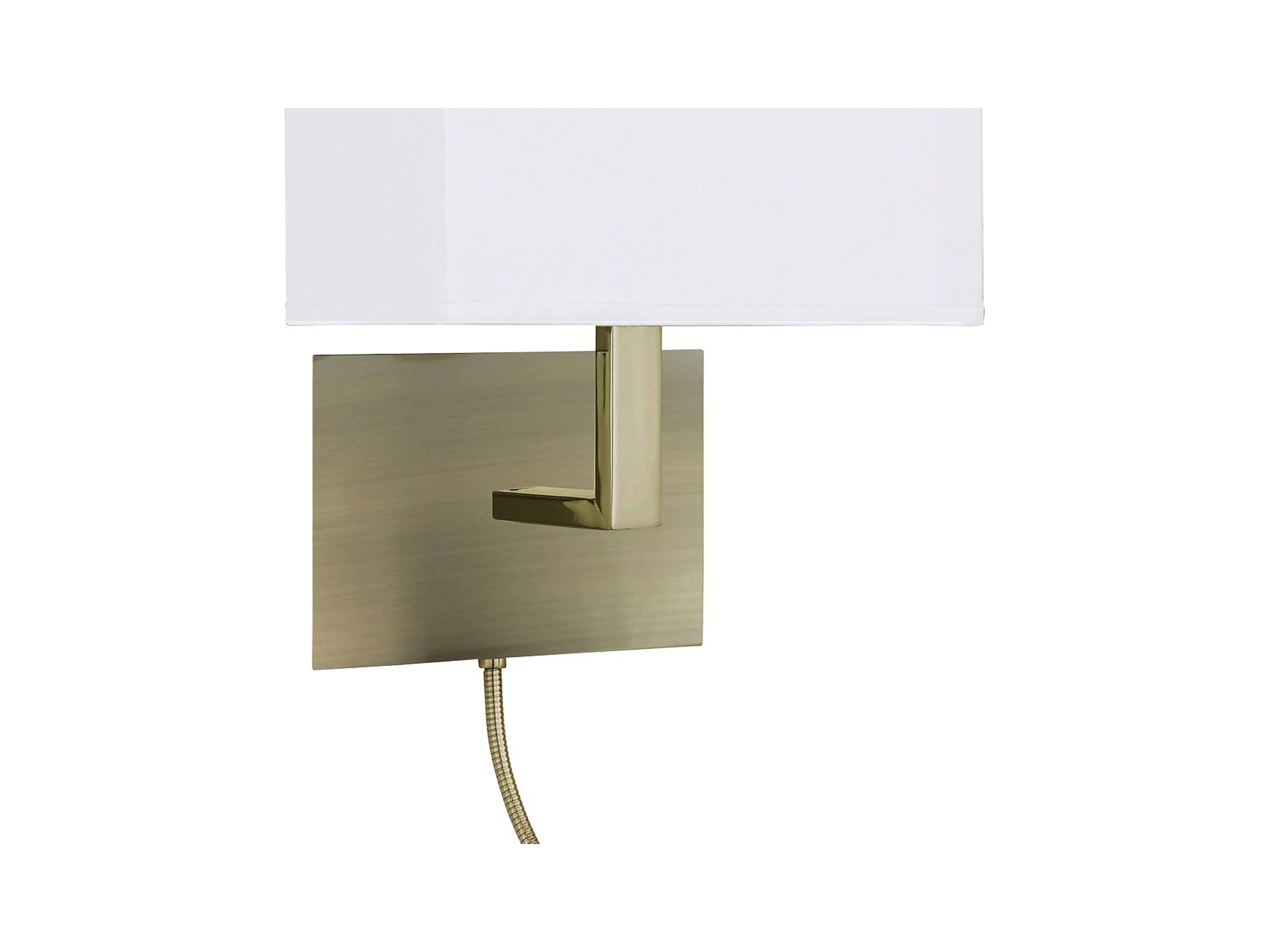 Searchlight - Applique da interno a 1 luce in ottone antico con paralume rettangolare bianco, attacco E27