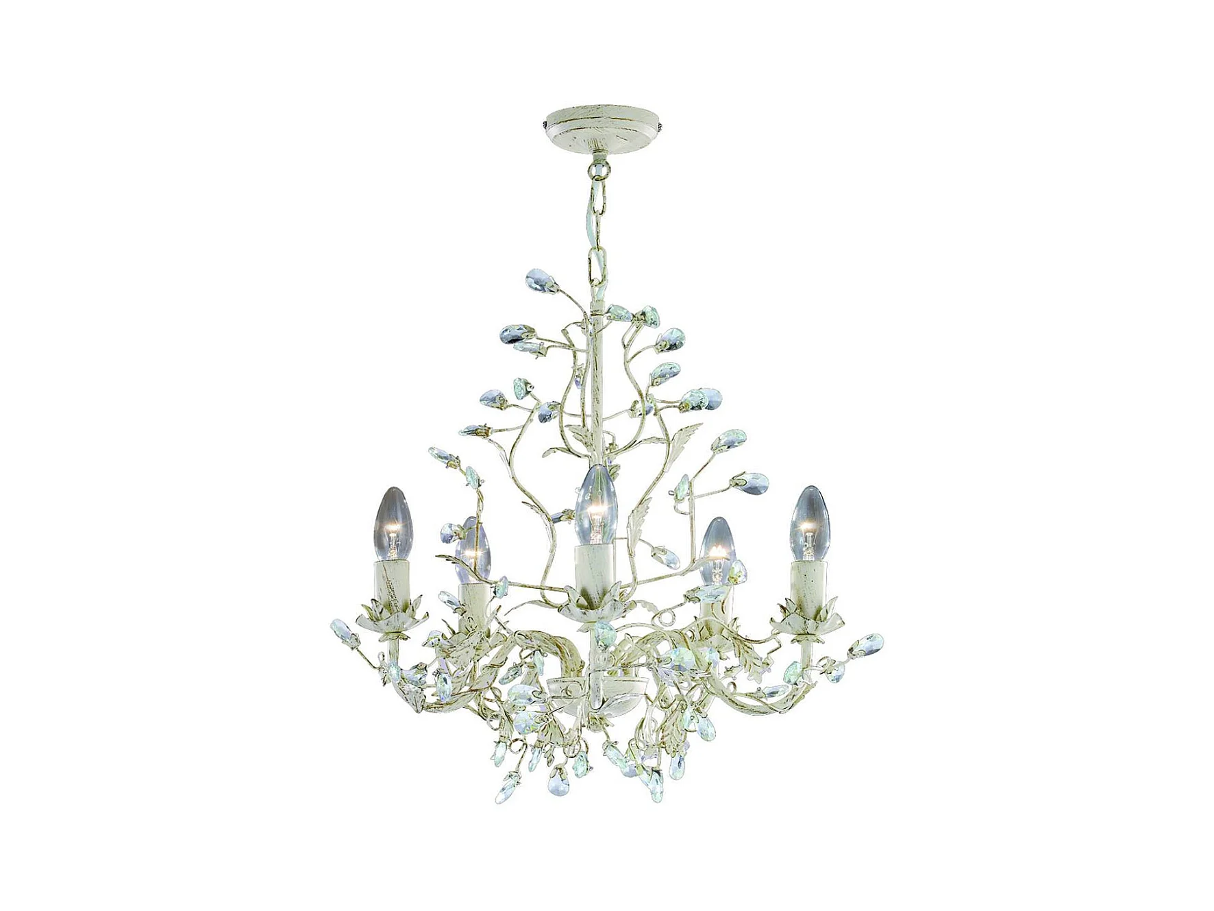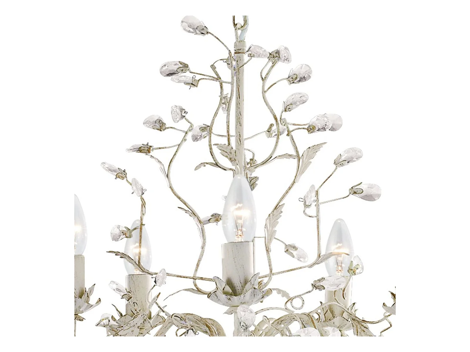 Searchlight Almandite - Sospensione a soffitto a 5 luci multibraccio oro, crema con cristalli, motivo floreale a foglie, E14