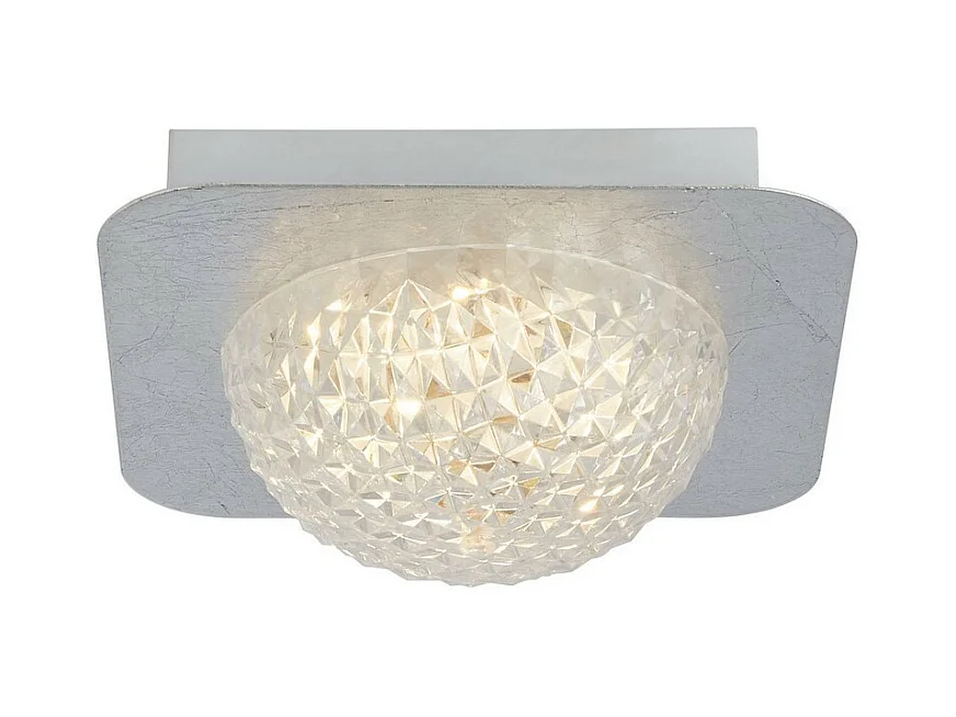 Searchlight Celestia Plafoniera Led Quadrata 1 Luce - Foglia Argento Con Acrilico Trasparente