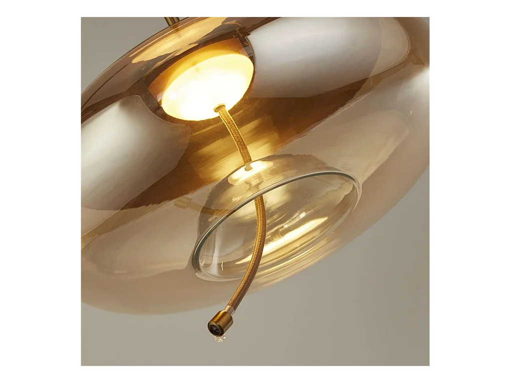 Searchlight Lisbon Sospensione 1 Luce LED, Ottone Satinato E Vetro Ambra 2700K